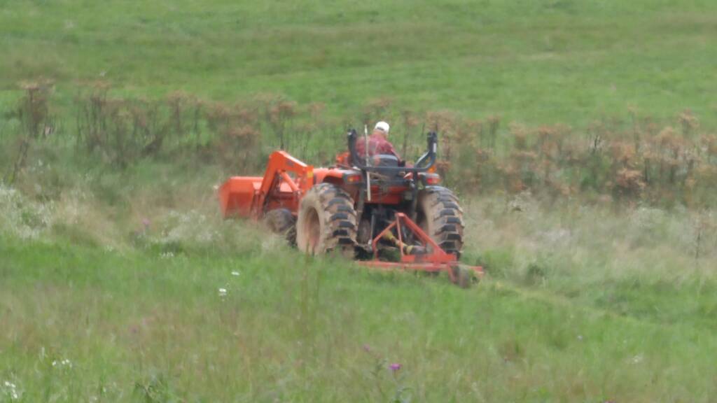 Lives alone on the farm. He still has a few cows, made some hay last summer, but didnt need much. Getting very hard for him to get around.