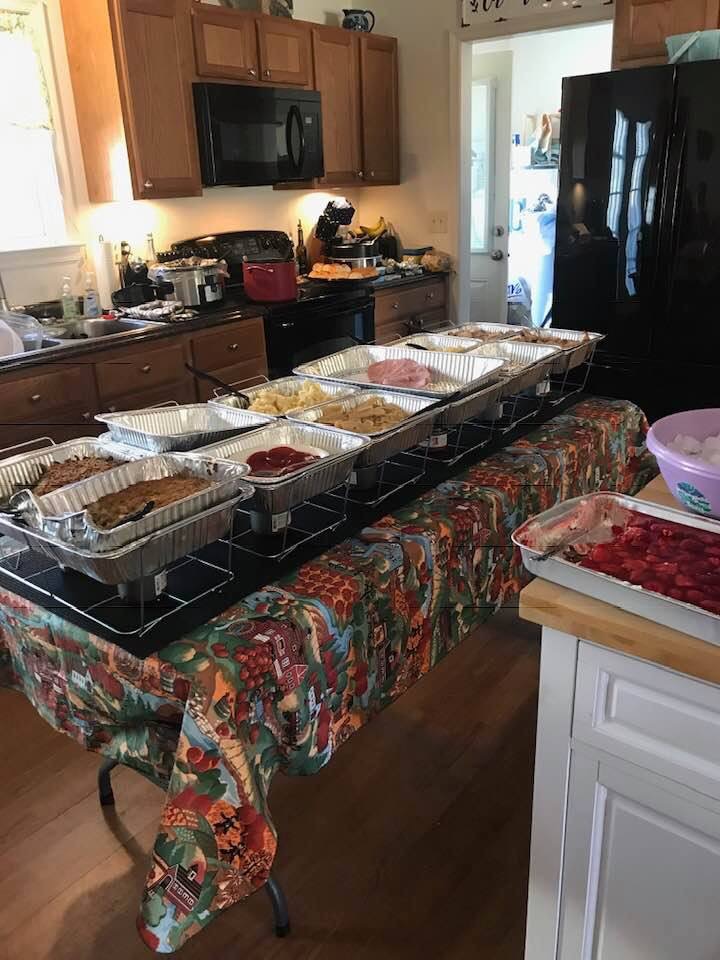 Yesterday was wet and soggy but didn’t dampen our spirits of 33 thankful people. One guy unexpectedly had to work and one lady could suddenly make it. Had table seating inside for 31 so close enough. So much awesome food.