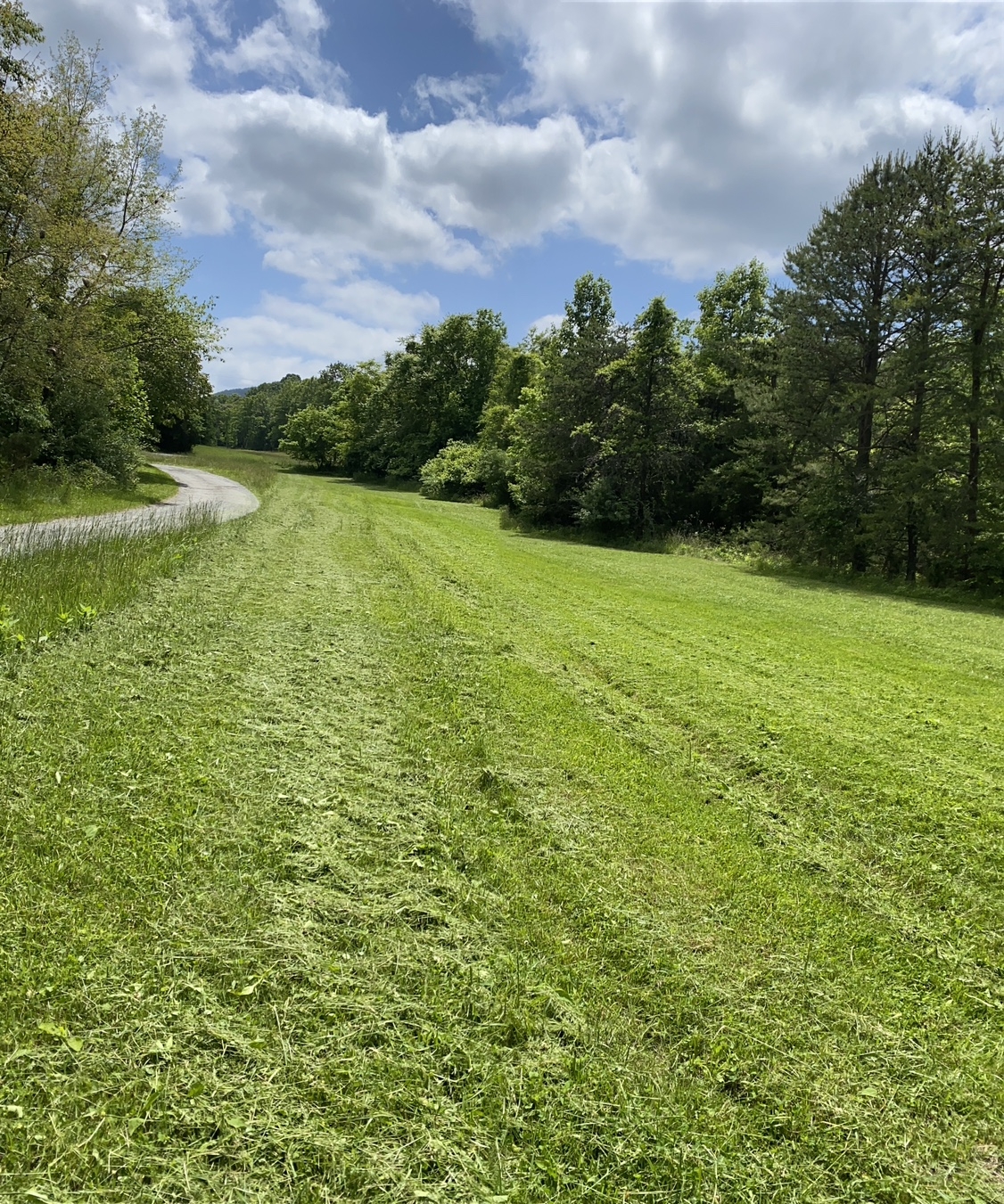 Grass was pretty tall in front area along the road. Road does not follow property line.