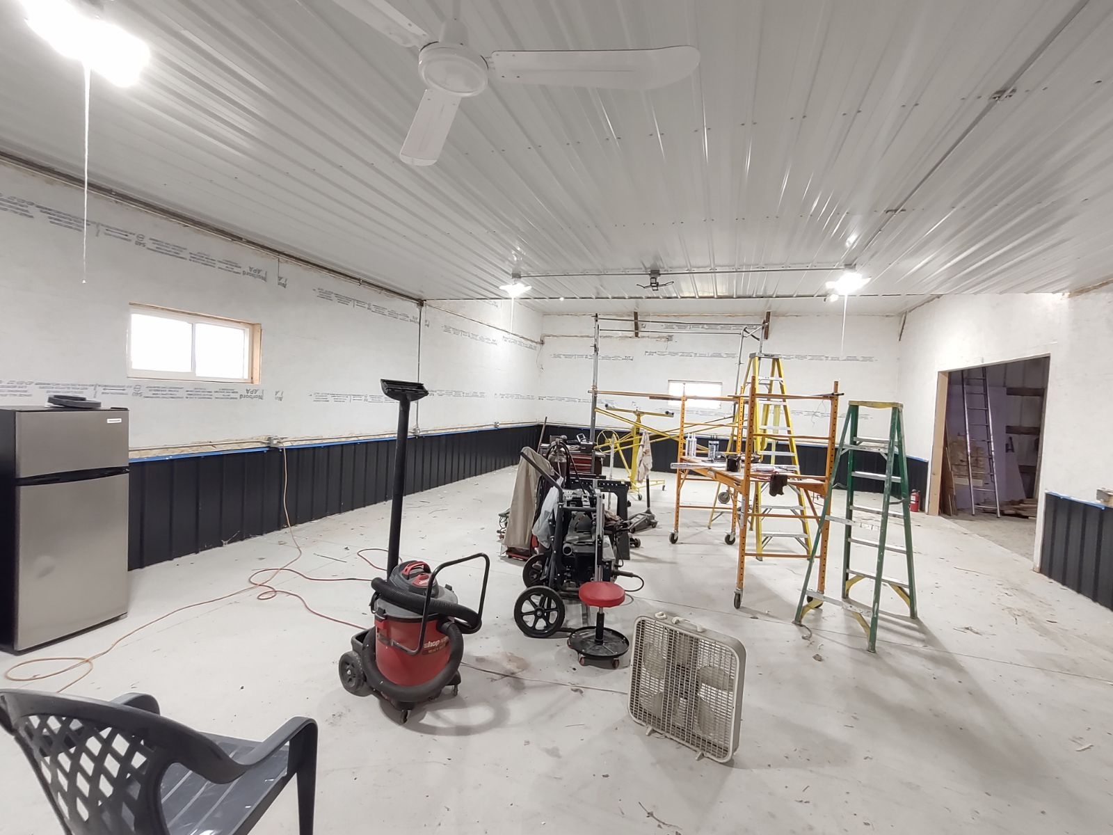 I bought a Wagner powered roller and got the first coat of primer on the shop walls. It worked great, no back and forth to a tray to refill the roller. OSB sucked up the stuff pretty good, and the OSB ink bled right through. I'm OK with that. Gotta go back out and finish the edges. I'm hoping the "real" paint covers the bleed through, but it's a shop - so I'm not too worried. I used latex, for easy cleanup.