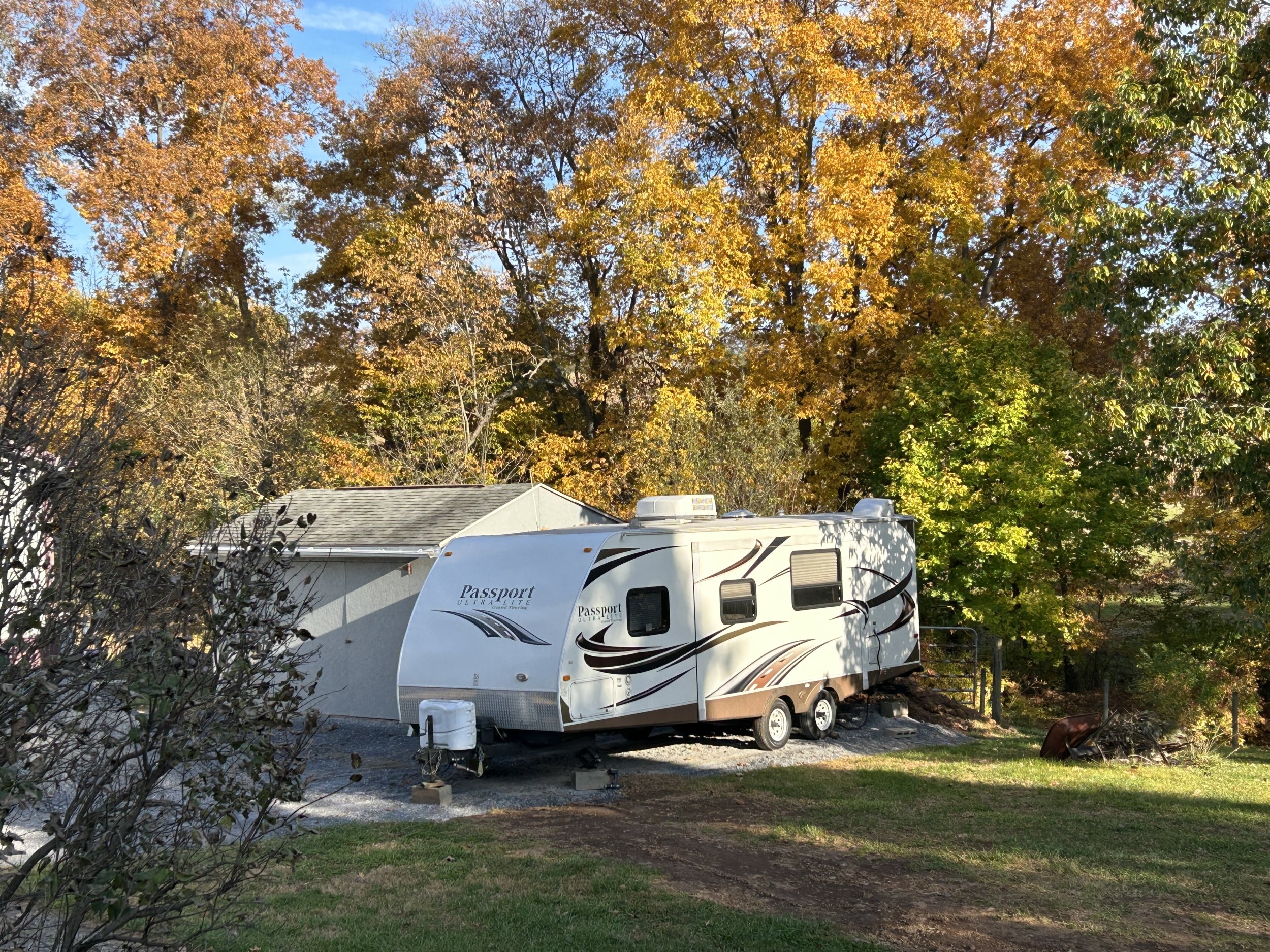 Back home from camping. Picked the absolute best week to go weather wise. Got camper stowed away on its new spot. Should have made this pad years ago. Everything unpacked. Will need to winterize soon.