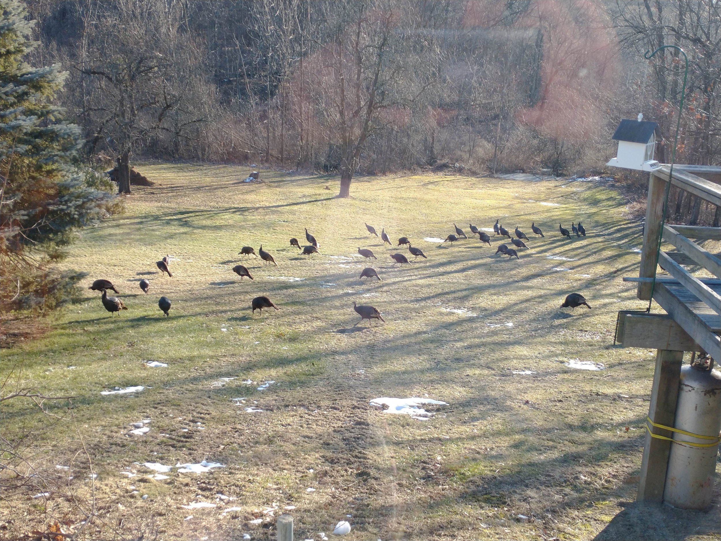 While making my breakfast this morning looked out the kitchen window as a couple of turkeys decided to wander across the lawn.