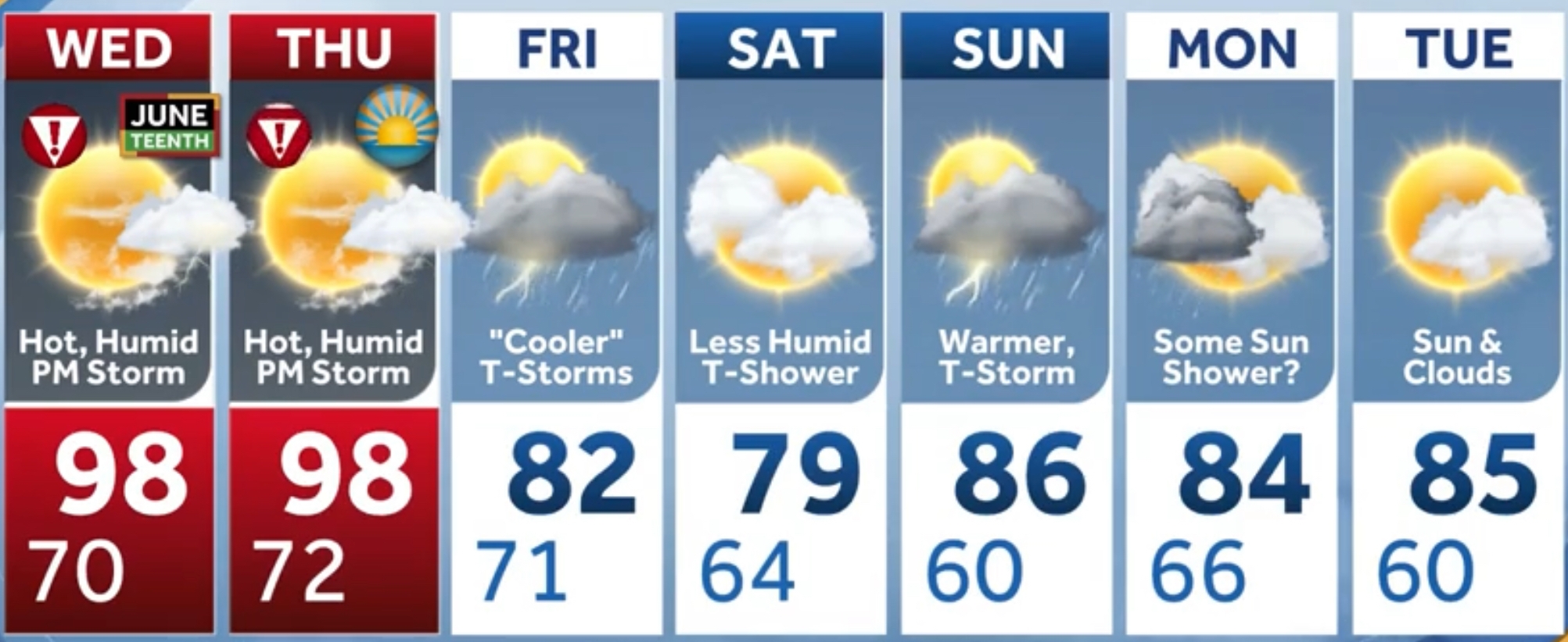 yuk, eight of next ten days 95 degrees, lows of 75 at night.