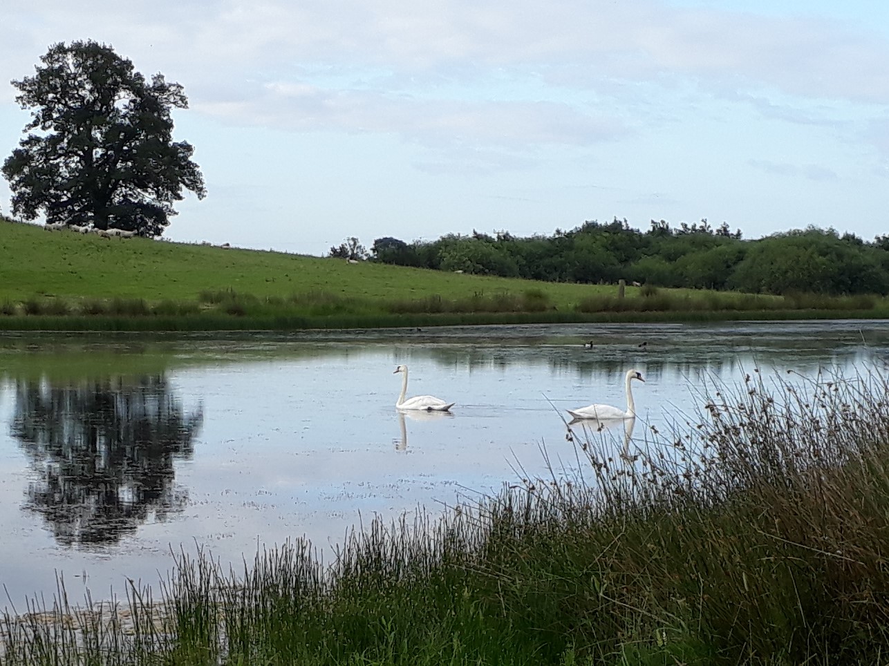 Warm weather has had pond plants growing like crazy. Swans and two families of ducks with ducklings don't seem to be deterred by the algal blooms.
