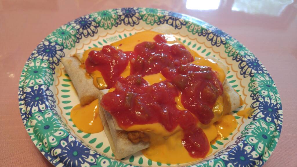 Doctored 2 frozen burritos with queso, then some Salsa. Still not great, but better than okra.0913191151.jpeg