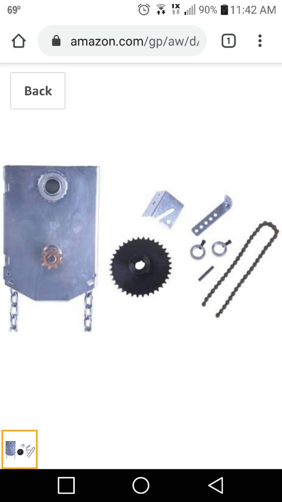 Bought a jackshaft chain hoist for the barn door. Came with no instructions. Need to extend the pipe to use it. Wife went with me to look in barn. Will order setscrew type coupling, and piece of 1" solid shaft. That will cost more than the opener. This one is geared down 4:1. Some are 1:1.