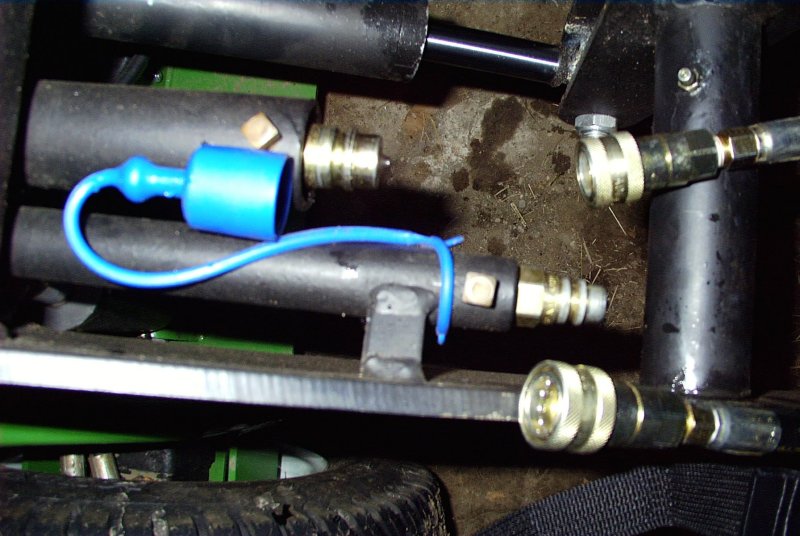 OK, I put the kids to bed, then fell asleep myself. Sorry for the delay, here you go. Attached is image 1. It shows the larger 1/2 inch male main PTO connection right next to the blue dust cover. The other male connection is the 1/4 inch aux PTO connection. I measured the diameter of the male 1/4 inch connector and it appears to be about 9/16ths across at the tip. The inside diameter of the female 1/4 inch connector appears to be about 11/16ths across which is the size of the ring on the male connector.