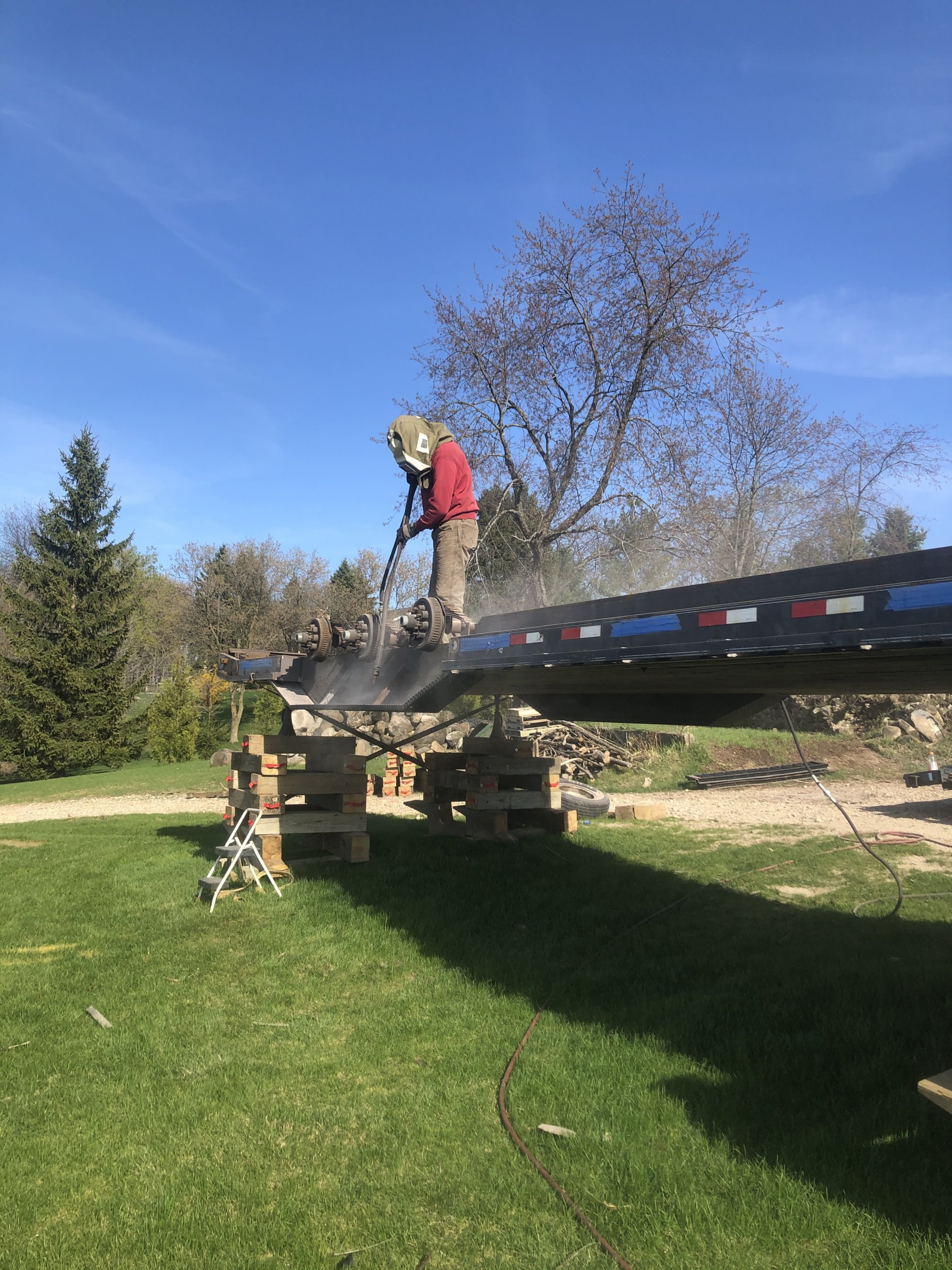 A few weeks ago we bought 2000lbs of Mason sand. We had it spread out on the trailer drying. The sand cut well and we had no feeding issues, but we did strain it into the tank. A 1/8" screen fastened to the bottom of a bucket worked really well and caught many a pebble. A little breeze and dust masks and we had no issues with the dust. We went through about 1500 lbs of sand. This being a total loss process there no way I was wasting my money on purpose made grit. The Mason sand only costed $60 direct from the quarry.