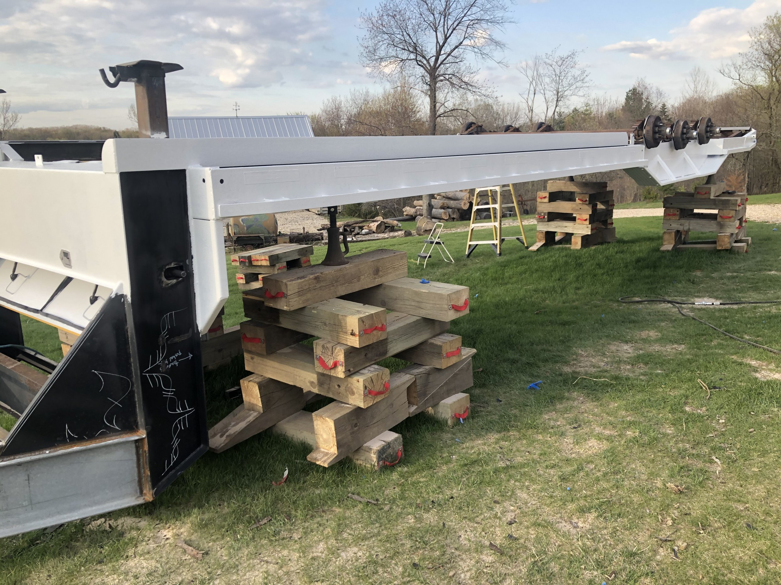 I figured both tubes weighed about 730lbs. Maybe a few hundred in the other brackets and such. A single round pipe would have been more effective and lighter, but wouldn't have cleared the axles.