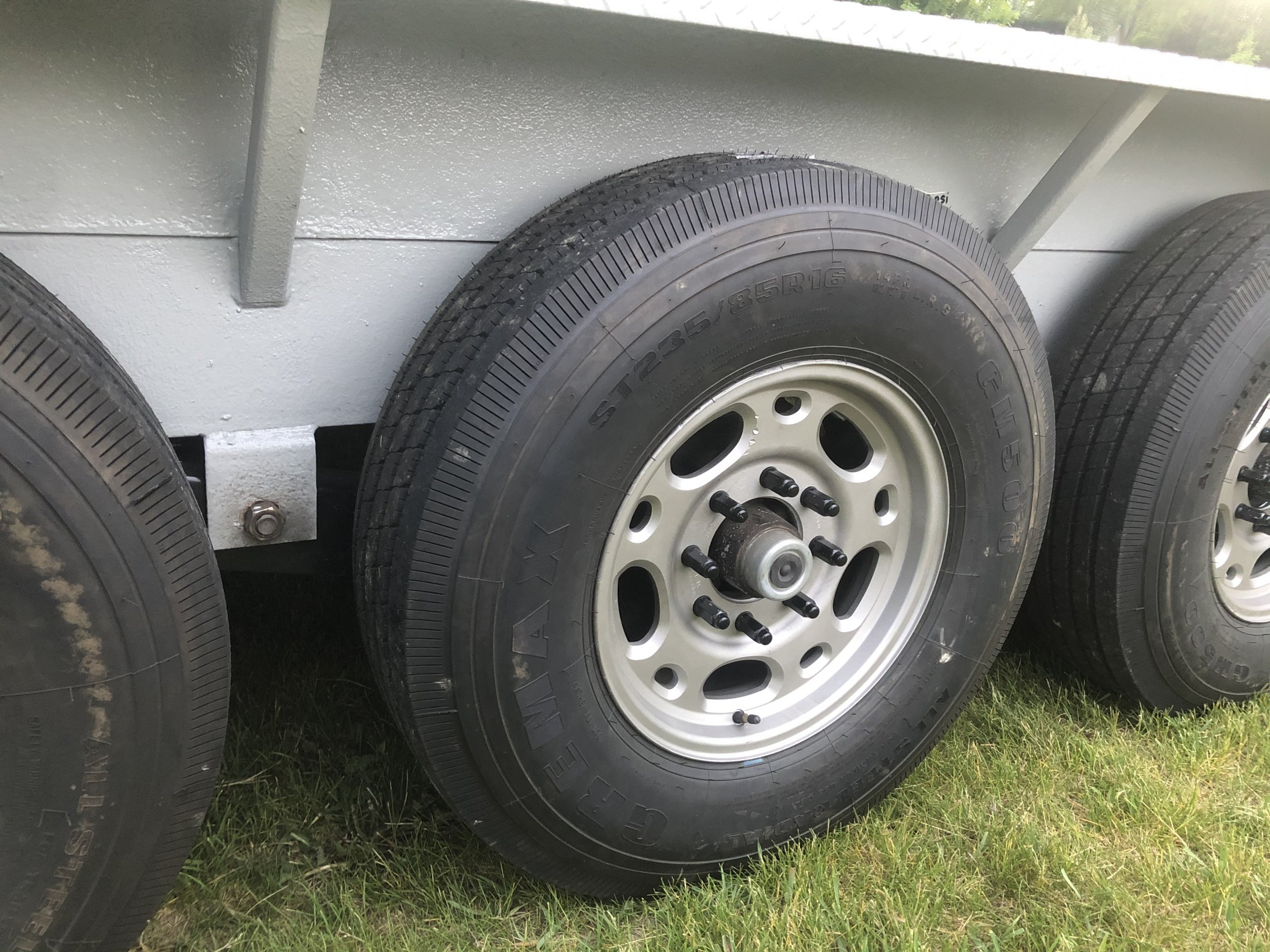 For the tires I went with a 235/85 16 14 ply. Hopefully these won't come apartike the 12 plies. The wheels are PYOs from a 2000 era Chevy/GMC pickup. I sandblasted them and then painted the wheels using a silver appliance epoxy. I really like the long lug nuts; they help conceal the hub.