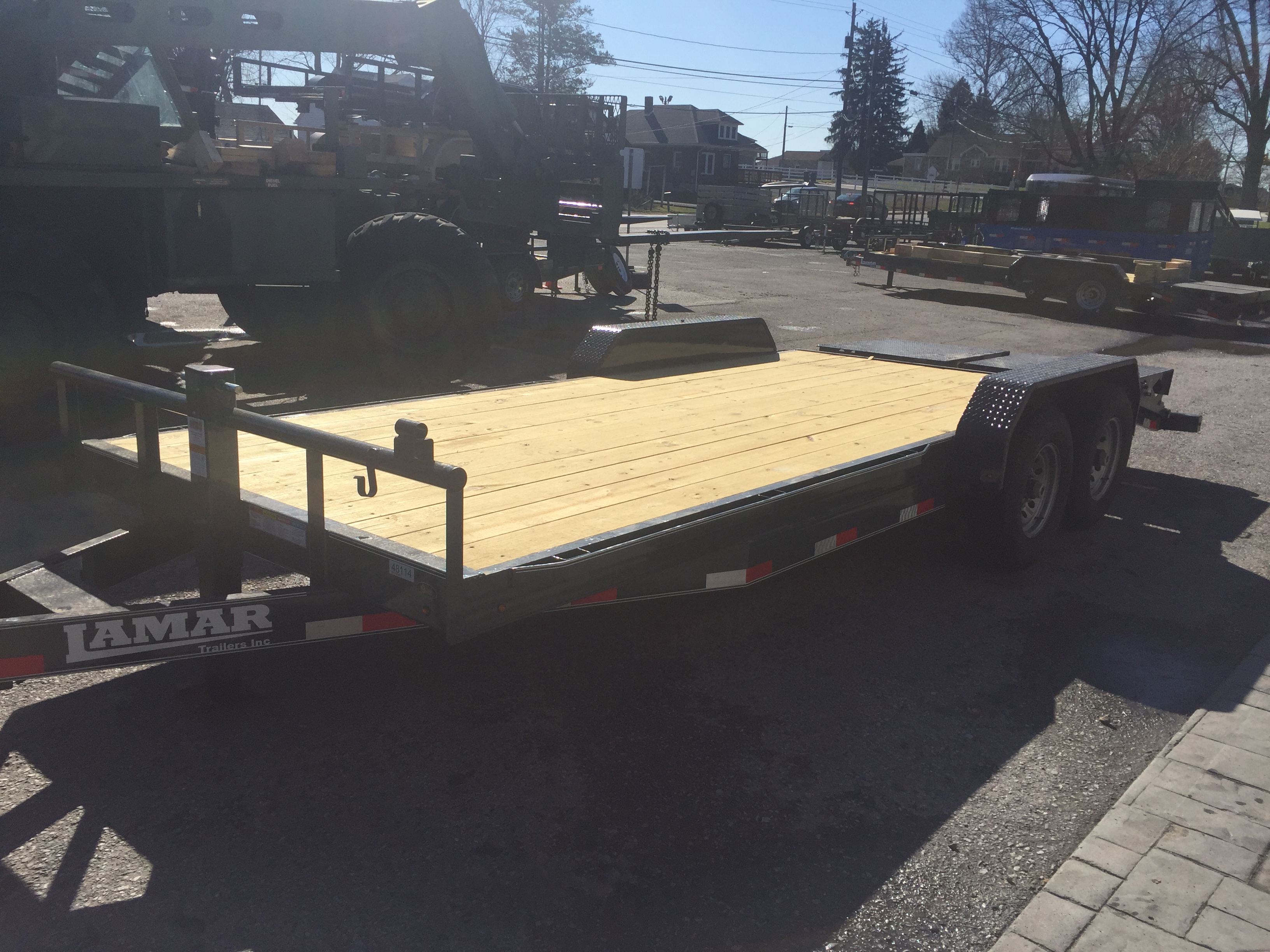 So with a 6 Cutter she wont fit on my trailer. My trailer is plenty capacity wise but just not long enough. So I have been trailer shopping. I went round and round for a month and almost purchased a 20+5 deckover gooseneck. I could not get over the price and the 32-33 deck even with an expensive recessed low deck model is very steep to load. So I started looking for a low pro bumper pull. After checking them out I decided to order a Lamar, they simply include a lot of options many charge as upgrades at a lower price. Meaning there are lower priced trailers but they do not have the features, these include most everything at a very competitive price point.