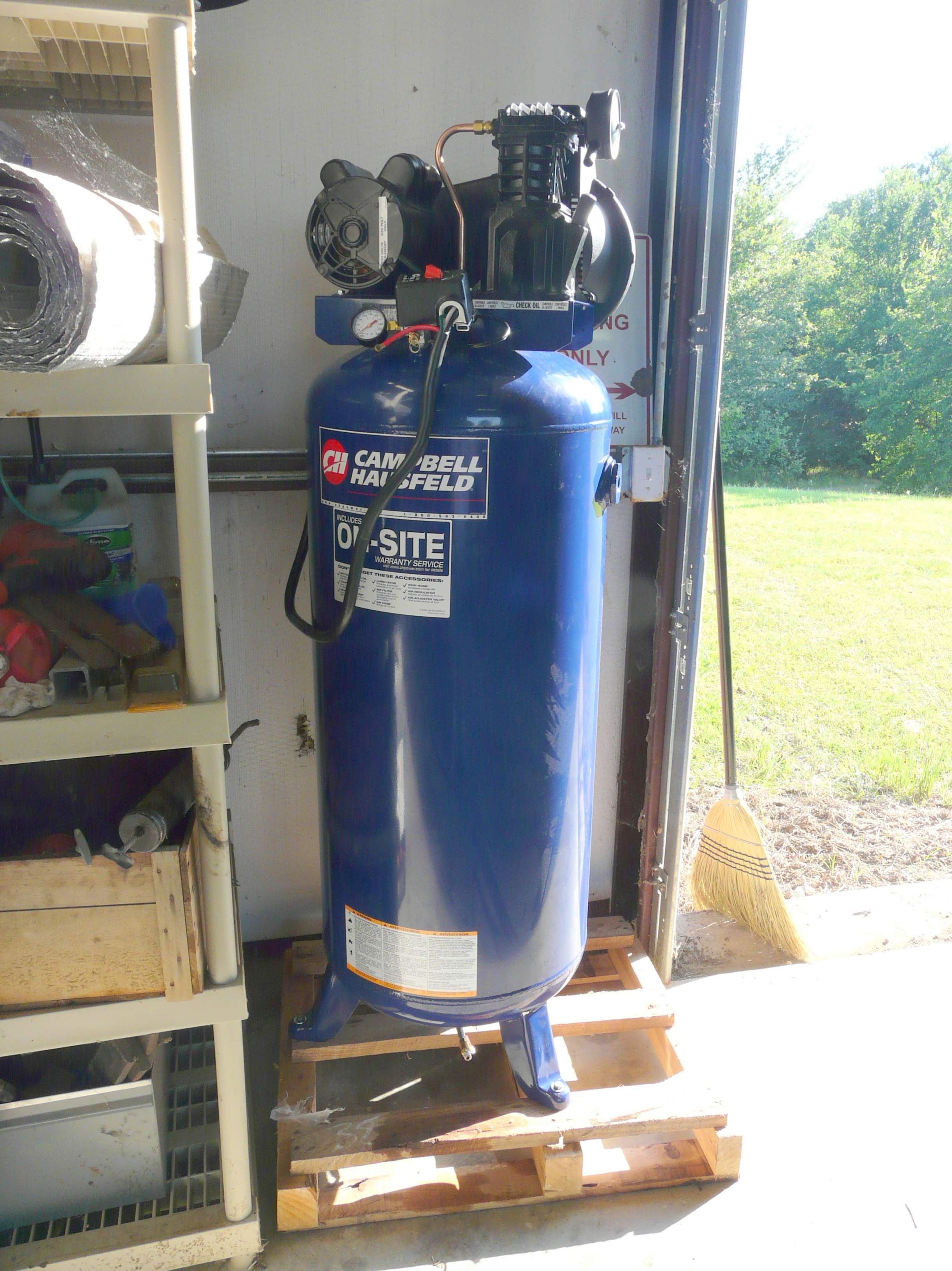 Spent the day picking the Campbell Hausfeld 60 gal compressor at Tractor Supply today. Turns out they didn't have a regulator nor any kind of wiring so I had to go around town picking up everything I needed.