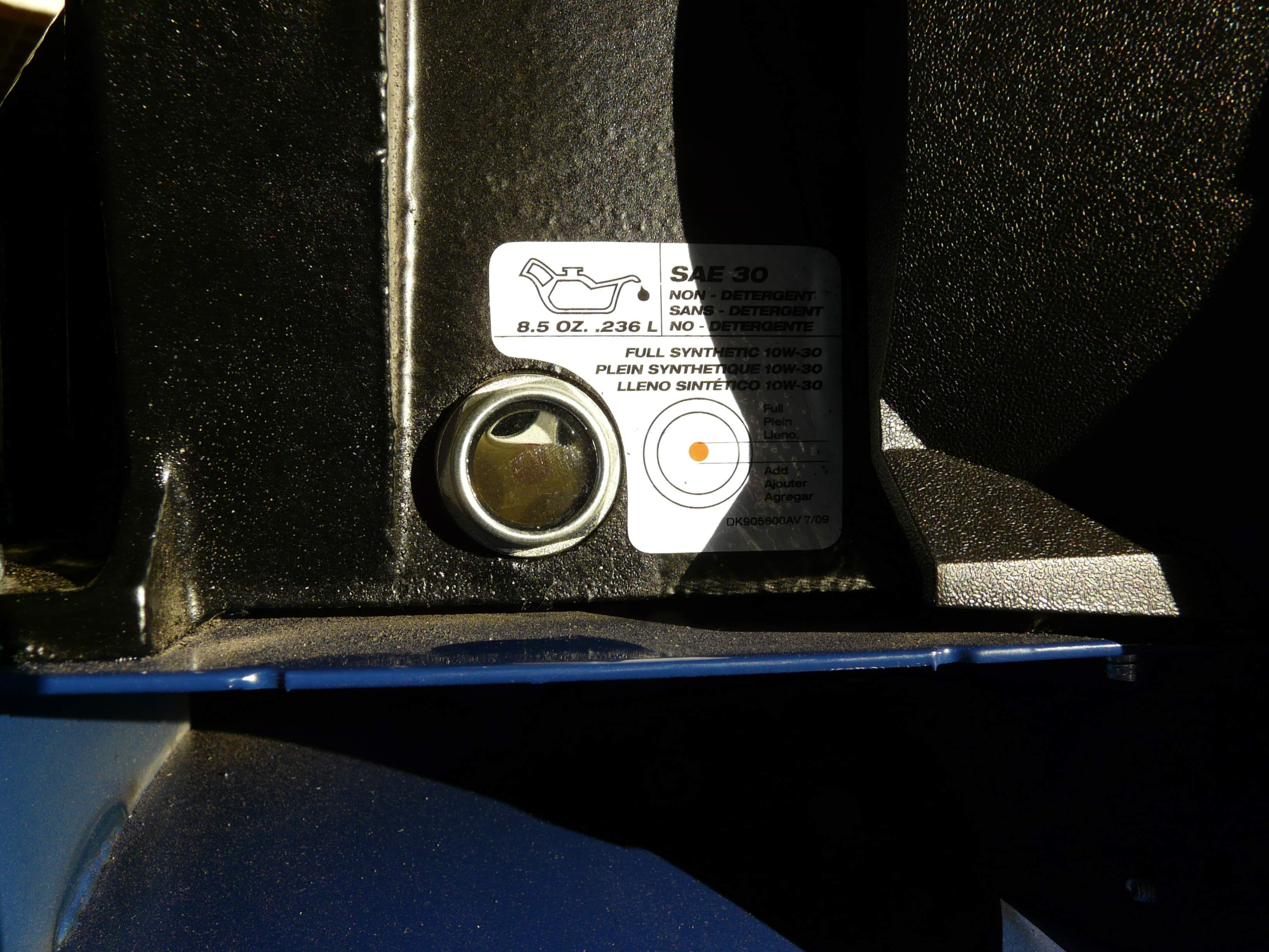 Seems to work great, maybe a little louder than I expected but not near as loud as my old oilless compressor, and won't run near as much anyway. The manual which is completely deficient as to hooking up the wires did at at least recommend Mobil 1 10-W30 oil - 8.5 ounces. Actually I bought a quarter of IR sythetic all temperature oil, which I figure would be about the same. However I was surprised that after the 30 minute break in and a few other cyles today the oil got dark (see pic) so dark it was hard to see the red spot indicator in the glass. Is this normal?