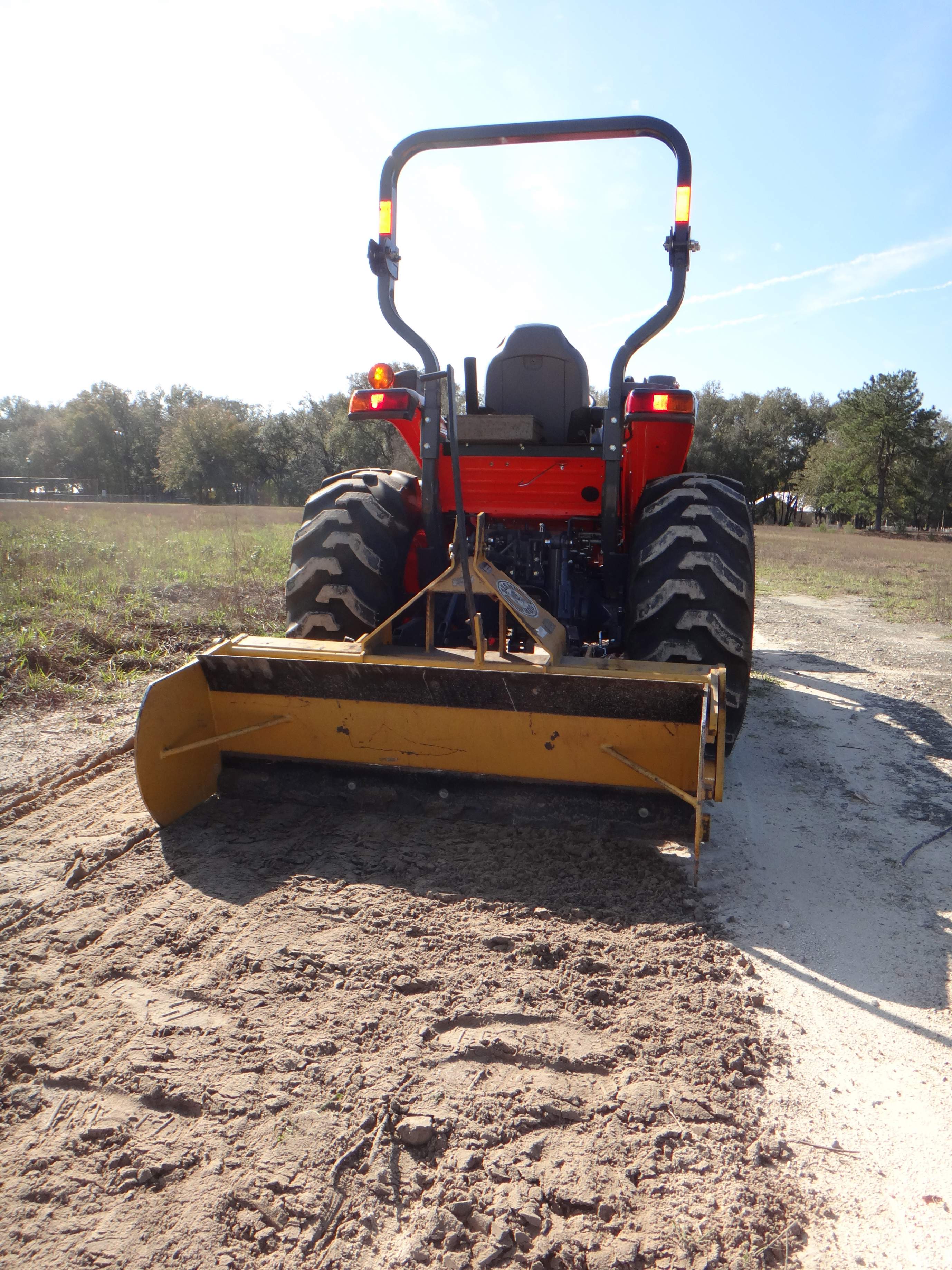 RE: Rear Blade and Landscape Rake widths ~~both these implements are usually employed on an angle, seldom straight. Plan for size which will cover your tire tracks when the implement is on an angle, generally 12" to 14" wider than your rear tires. Weight is your friend when operating ground contact implements.