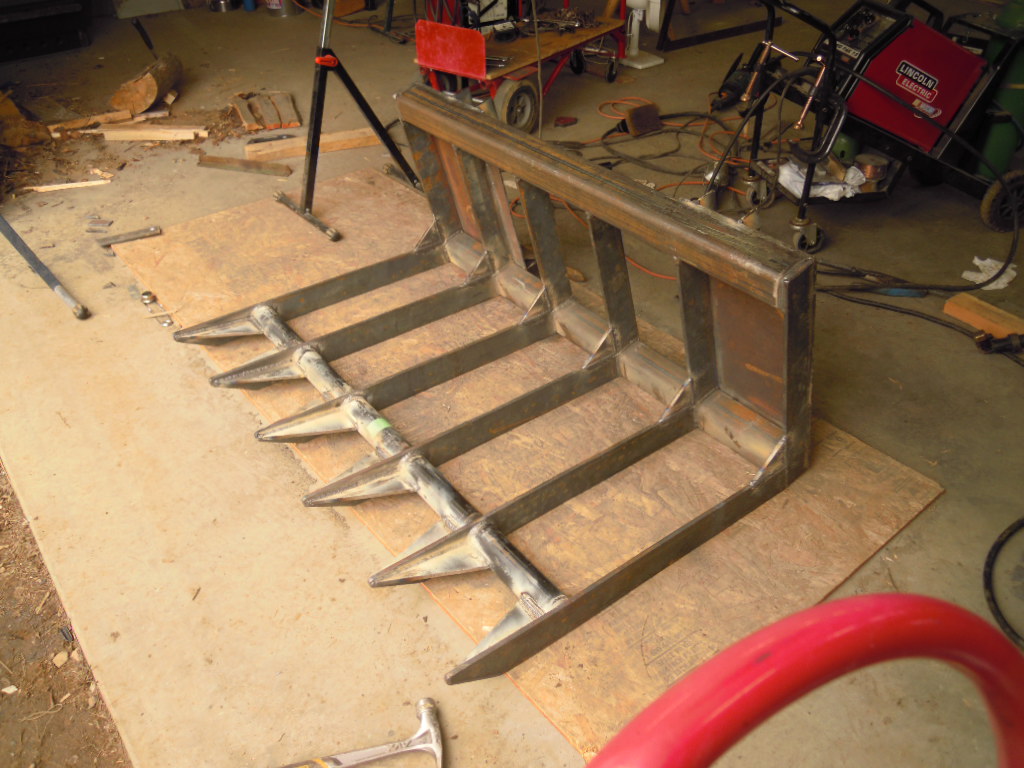 Your timing is perfect!! I was looking at that top piece tonight and thinking this is the weak point in the whole grapple. That top piece is only restrained on the outside edge but the inside is open. I thought about adding another restraint on the inside edge but I like your idea more. I'd rather add them now, than maybe have to cut out a bent one later and then add them. I'm in the middle of adding some gusset plates to the back edge of the tines too. I was also thinking that maybe there should be another stiffener between the pipe sections at the front of the tines and the back and then I see that yours has them. I'm still on the fence about this though since I don't see this grapple getting much hard use. As a matter of fact I'm not sure it will get much use at all, but I had to have one after reading all the threads about them and seeing the pics.