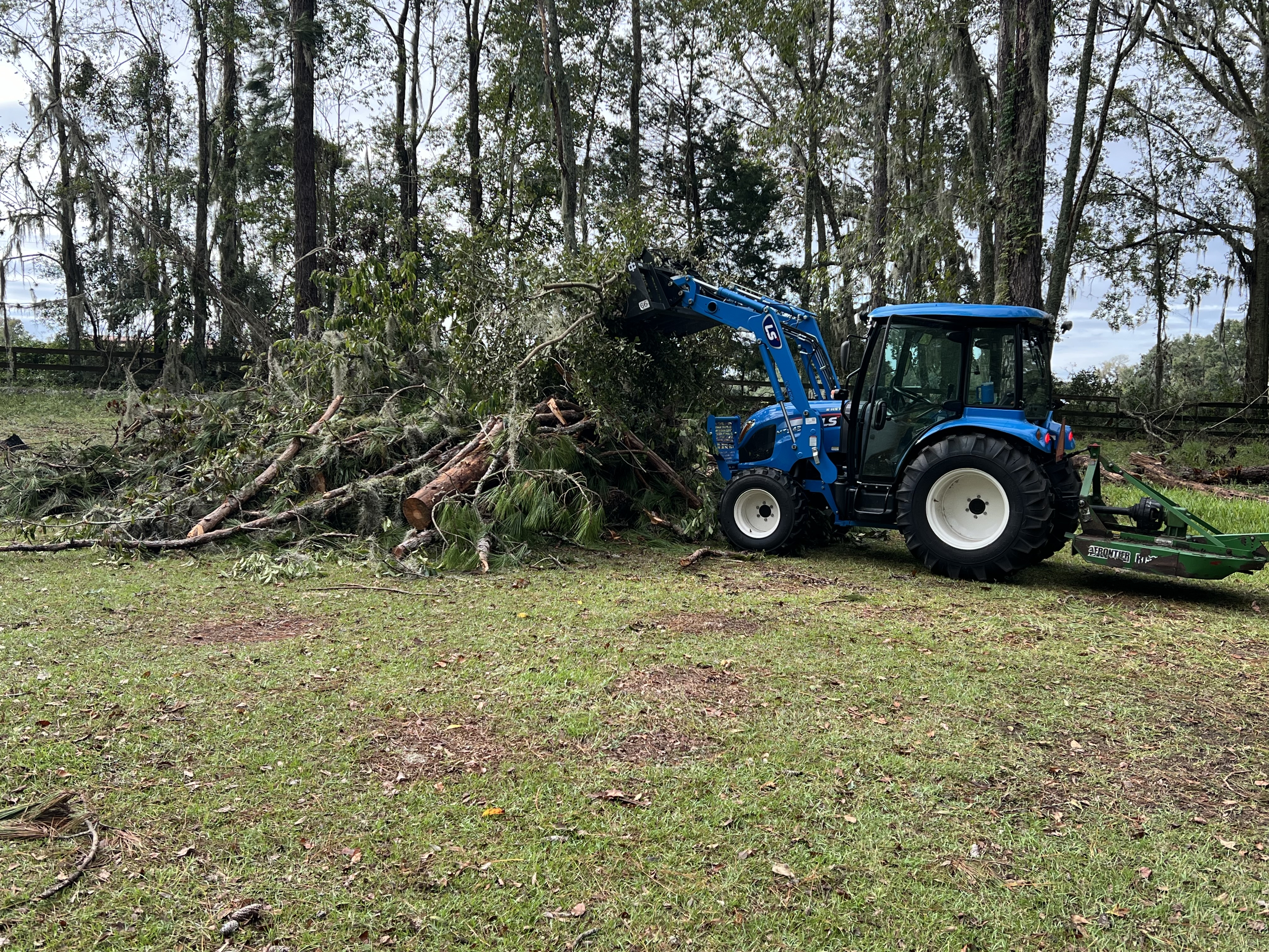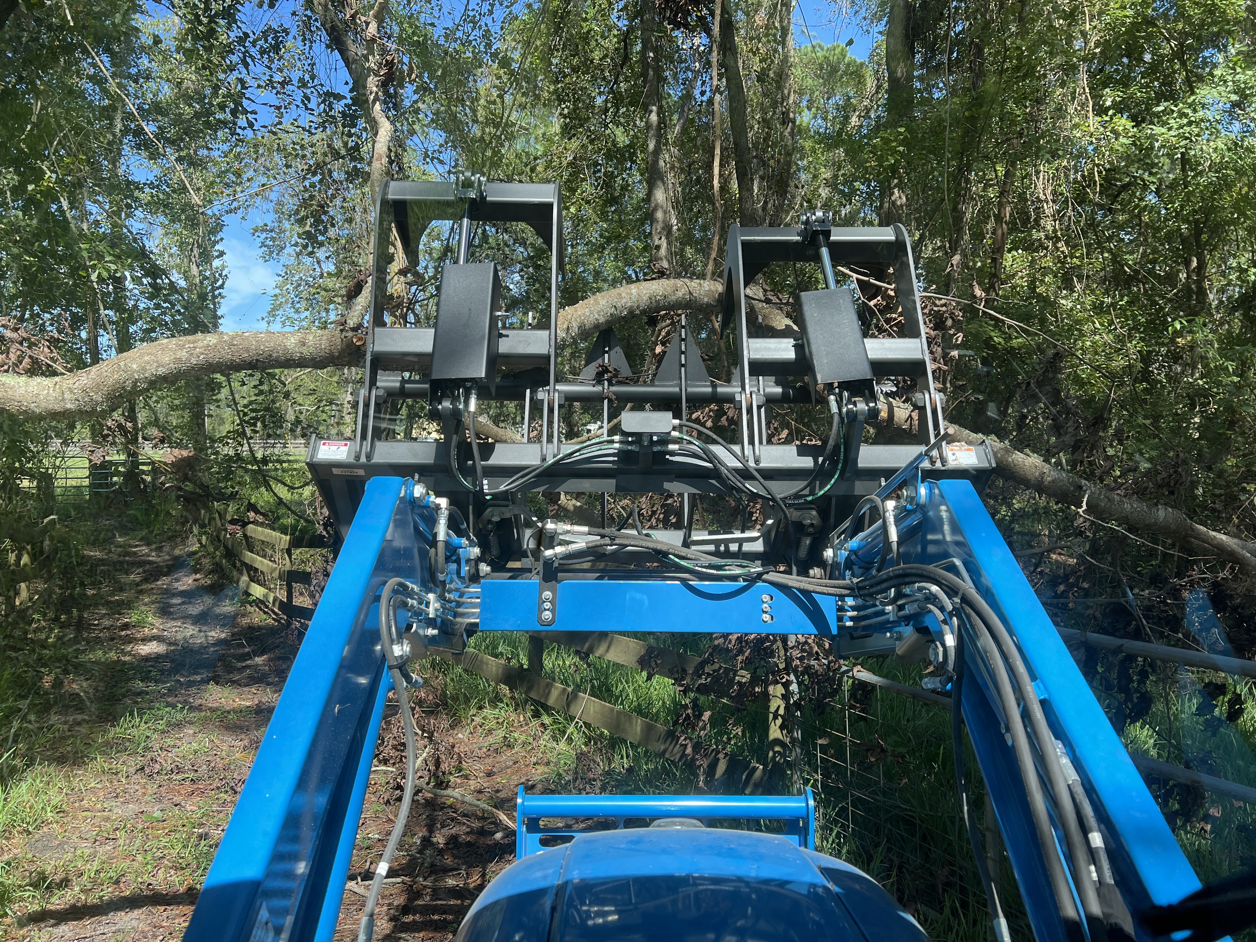 During Helene I lost about six big trees in my goat pasture to including three Chinaberry trees. Chinaberry leaves and berries are poisonous to goats so I have temporarily moved the goats to another pasture. I'm sure it'll be very expensive to have a professional cut up the trees and dispose of them. I'm now wondering if it'd be a good time to purchase a grapple for $2-3K along with a third function for my B2650 cab. It will probably take a while for me to cut up the trees with a chainsaw and haul the limbs and smaller trunks away but I believe I'm up for the challenge. I don't mind leaving the large logs in the pasture as they're in an out of the way place for the most part. The bucket on my FEL is easily removable and a grapple will attach easily. I have a burn pile in one of my pastures and can easily move the limbs to it. Two of the chinaberry trees are huge and I'm 77 years old but I think it's doable. What should I look for in a grapple purchase?