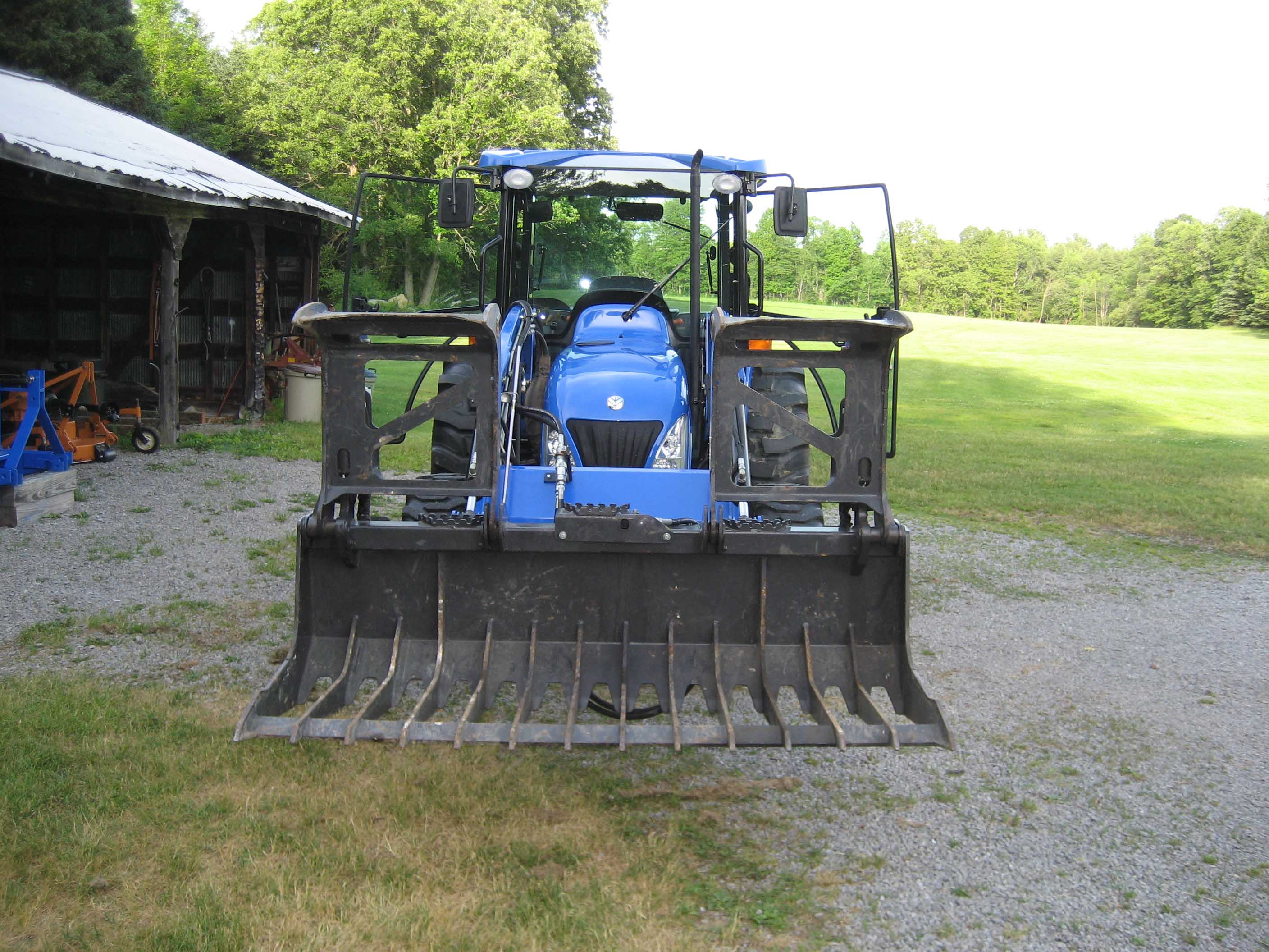 I bought the NH TC40S new in 2002 but she does sleep in in her own bay out in the shop.;) The paint on the bucket is new and so is the grapple.