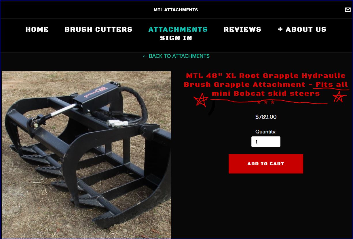 Yep, that is a different grapple than your first link to the mini skid steer one: