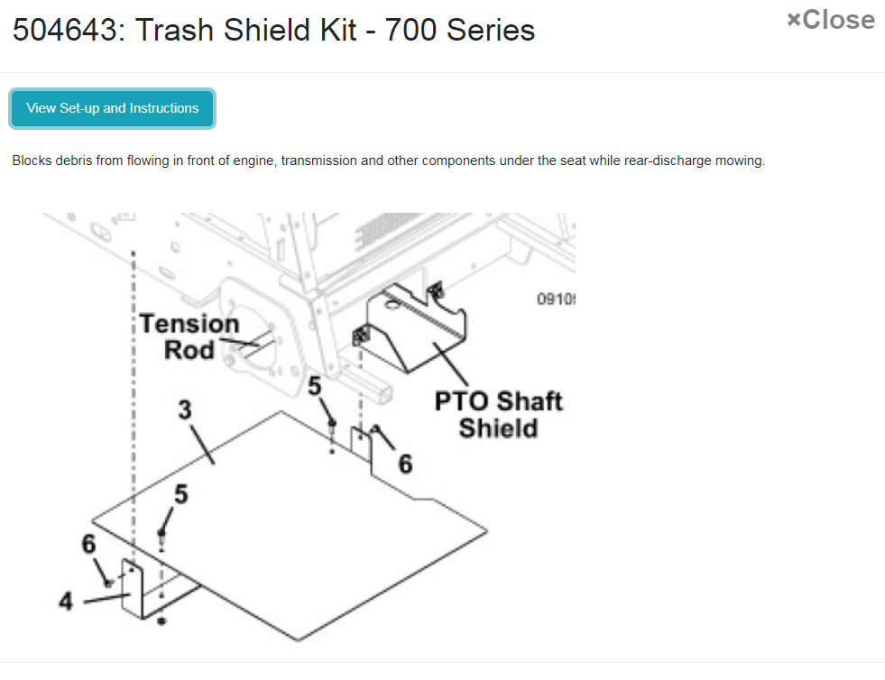 This is interesting. I can't find part number 504643 listed in GH parts diagrams. Is it a new accessory? I mow mostly lawn with my 700's, but also some rougher trails etc. I don't have a flail for them but still get a lot of trash on the radiator screens.tractorworks, if you don't have this on your 725DT6 I recommend you order one from your Grasshopper Dealer (have them verify this is the correct one). This will help keep debris from making its way to to the radiator screen!