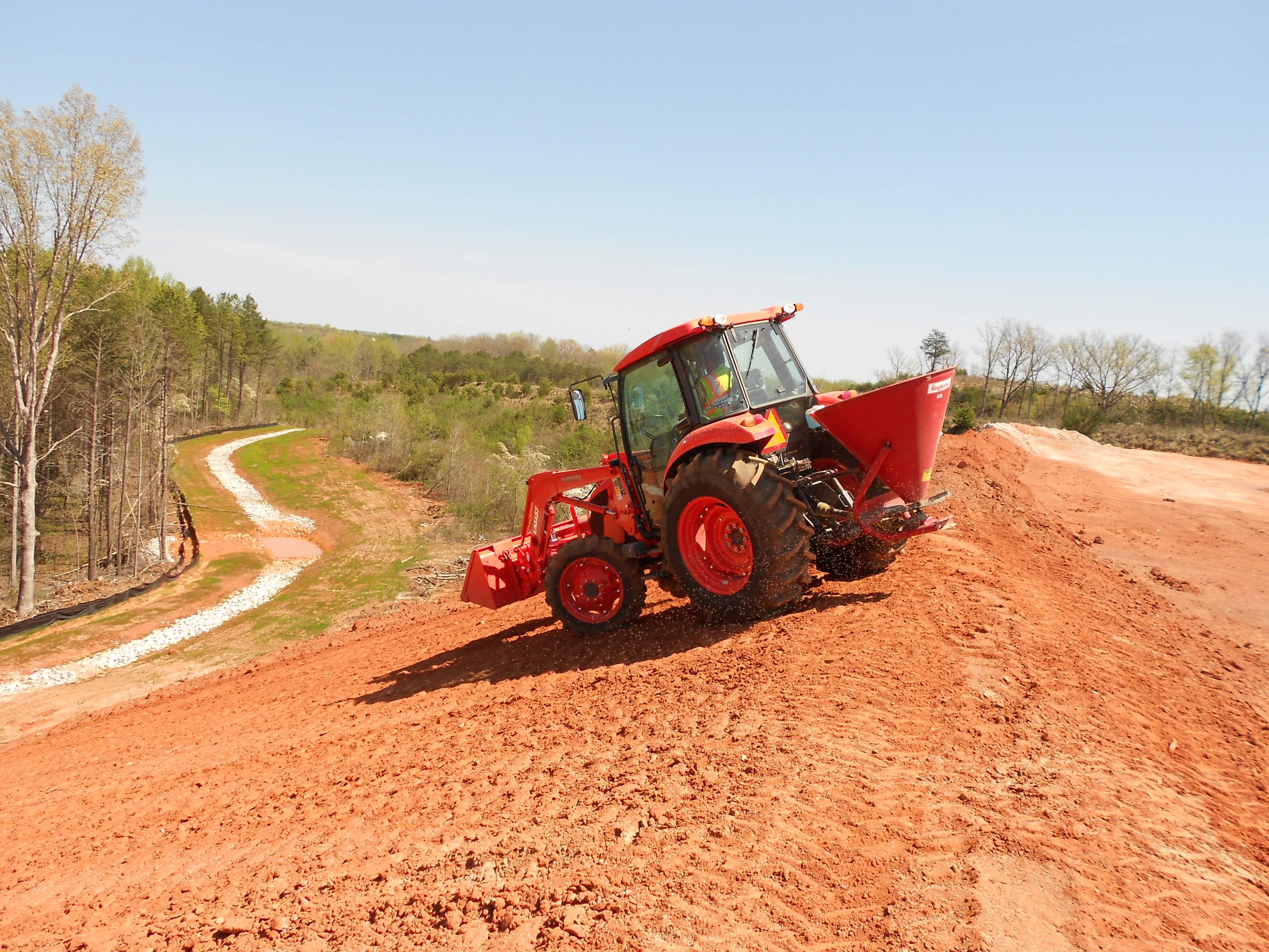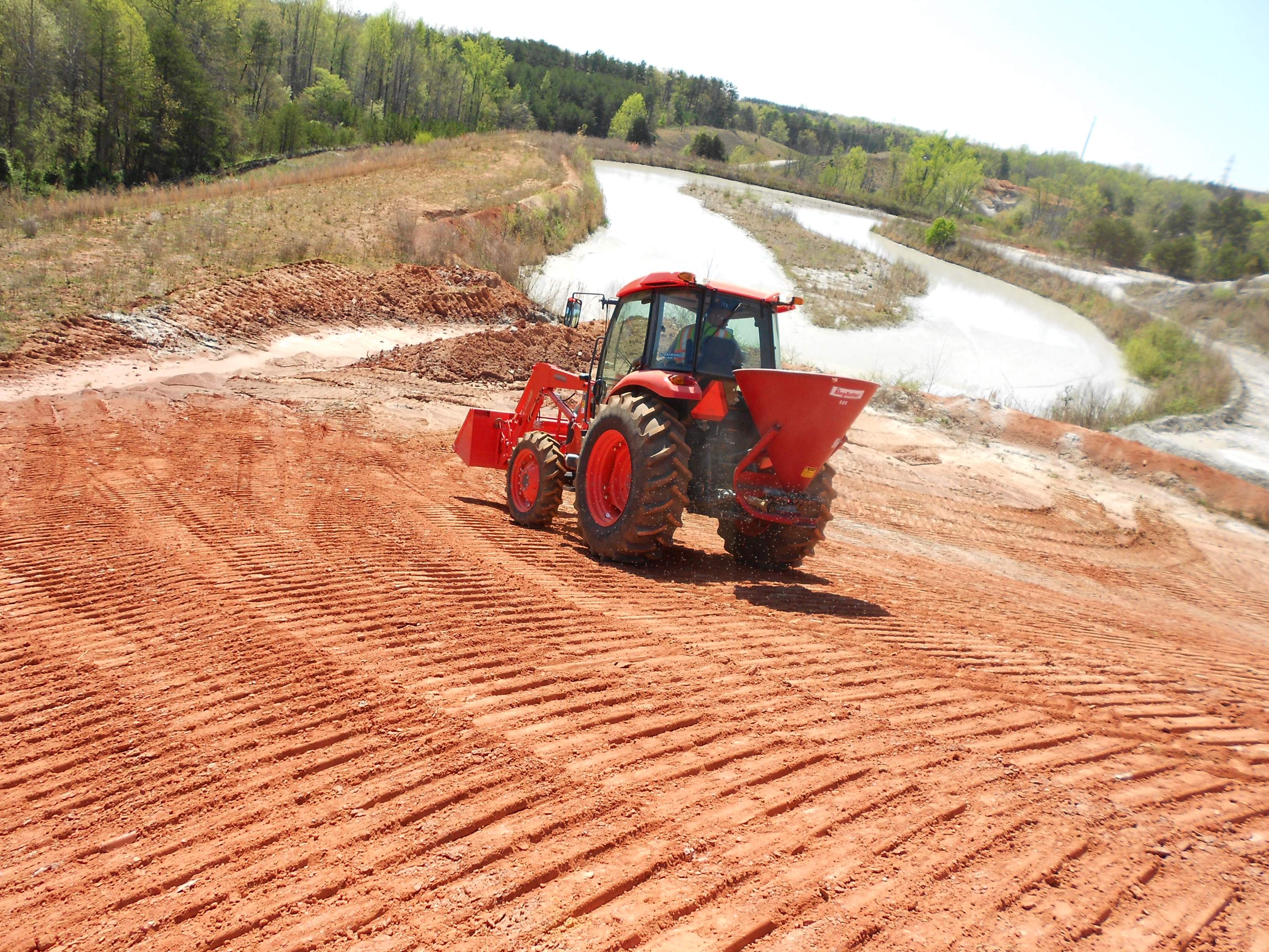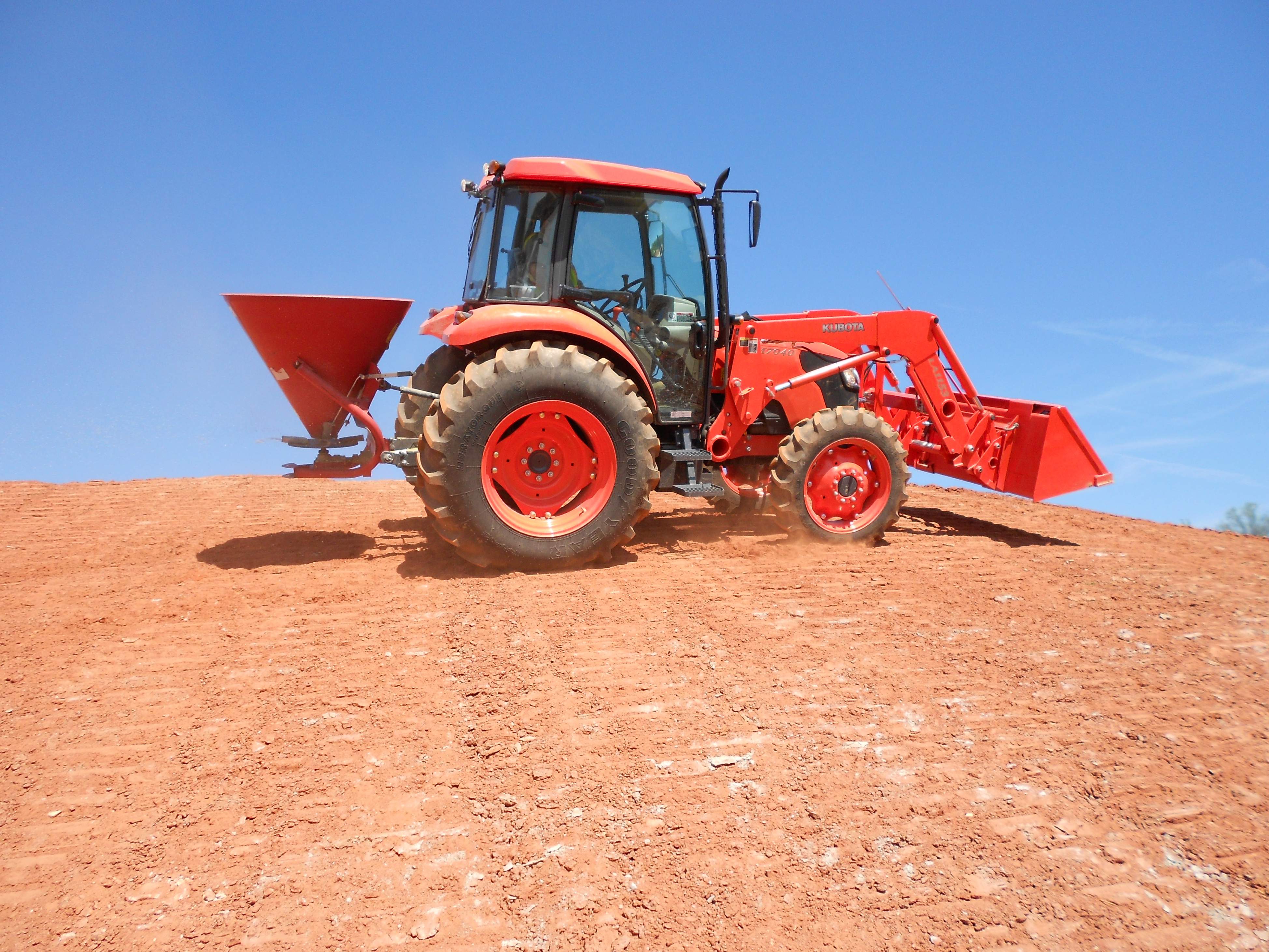 One week ago grassing some reclaimed property with 7040. Already saw some grass starting to come up last thursday. Hope weekend rains didnt wash it out. 7040 did a great job on the slopes.