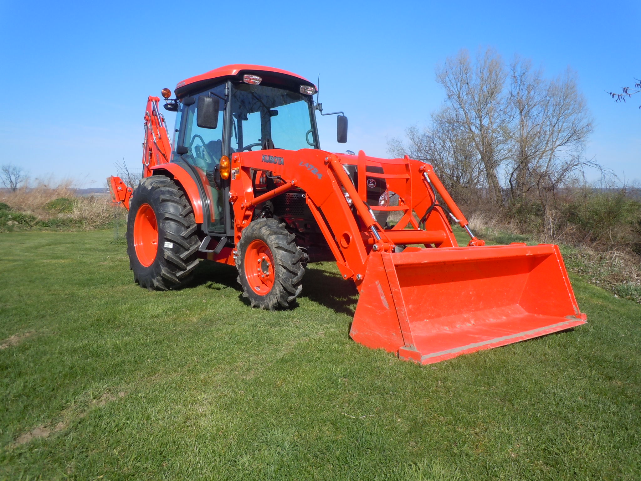 Not too long ago, I posted my personal introductory titled: Been Without a Tractor for Too Long. After having researched tractors since last year, and especially all through the winter, I could see that the used low-hours units were holding their value well, and that there was no real money to be saved buying 'pre-owned', so we went ahead and ordered one new built up to my spec. Unfortunately, all Kubota pricing had just gone up 4% on Mar. 1, but due to a stroke of luck or the Divine, the local dealer already had a L3940HSTC in stock, and so we slid under the wire of the price increase. Want to extend my thanks to all the good people here who were generous and forthcoming with their knowledge, experience and even photos to help me make decisions with regard to tire selection, valving, the tiller, and various other things.
