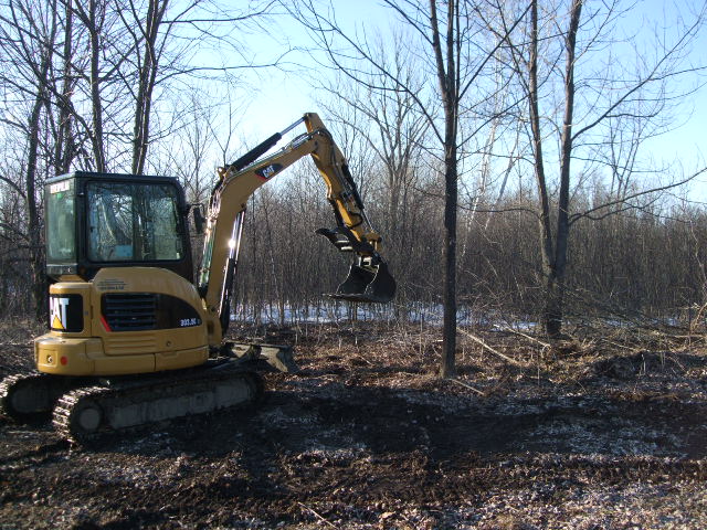 I have just purchased a Cat 303.5C CR mini excavator. I really enjoy it and the time just flys when I'm in it. One of my applications is grubbing 1"-4" thorn bush and other similar sized trees. I have tried using both my 24" digging bucket and my 36" tilting trenching bucket. I find that when I use the digging bucket, I end up pulling up lots of earth. I find that the trenching bucket works well when I tilt it and use just the edge to cut then pull up the roots. Problem with the tilt is that the thumb doesn't work with it and I also wonder if digging with the edge of the tilt will eventually damage it.