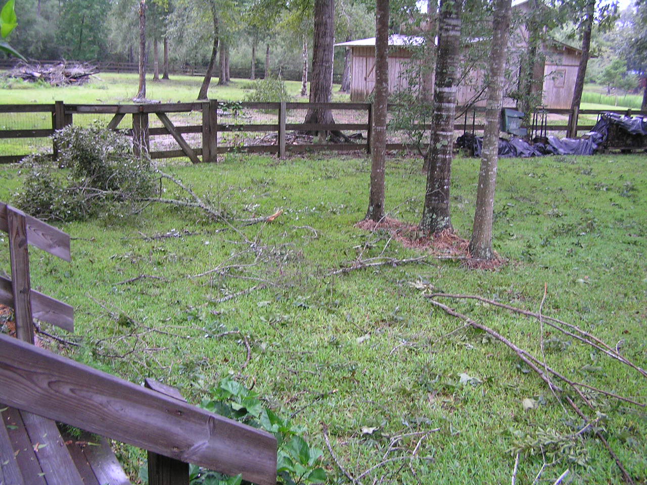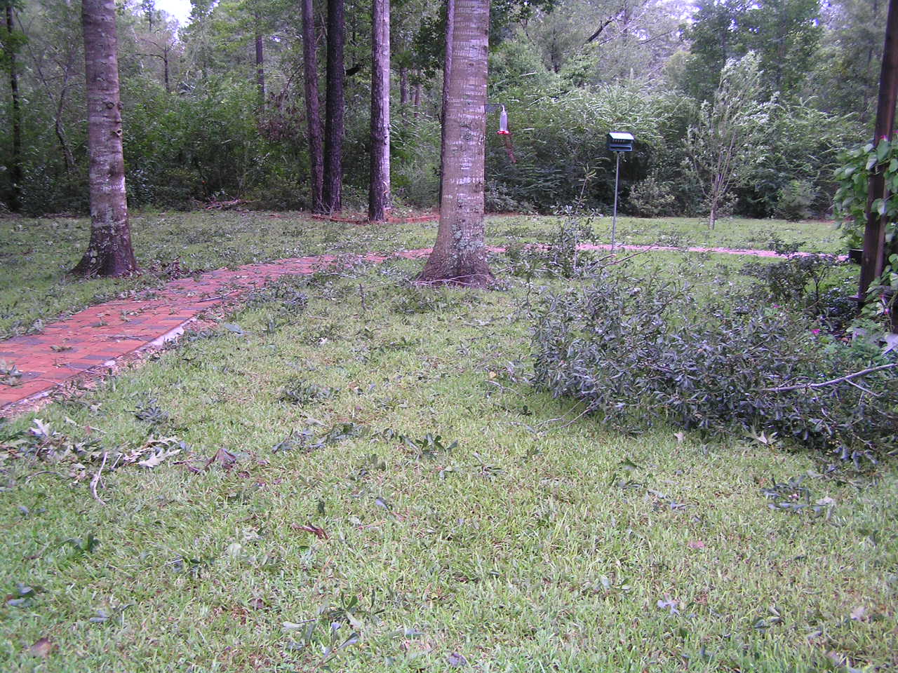 We did have a few generator problems. The Gardian 15kw generator is supposed to run one of my heat pumps & the rest of my house, I was just warned not to run both AC's at the same time. About 9 PM Monday, my daughter wanted to warm a hamburger in the microwave and the generator died. The 'hi temp' light was on. That is a safety feature - - it is supposed to restart automatically when it has cooled sufficiently. It was raining torrents at the time so there was not much I could do. Monday night was pretty miserable. I would never have considered staying if we could not run an air conditioner. Whatever, it never did come back on. I fiddled with it the next day without success. Finally, about 2 PM Tuesday I decided to try again, so I flipped the switch to auto, & it started. OK by me. I have no explantion for what went on. So, we had generator power through last night OK. The Propane Co. even showed up to top off my tank - - finally. I had called them Wednesday of last week. Happily, our power was restored just after 8 this morning. Ah.