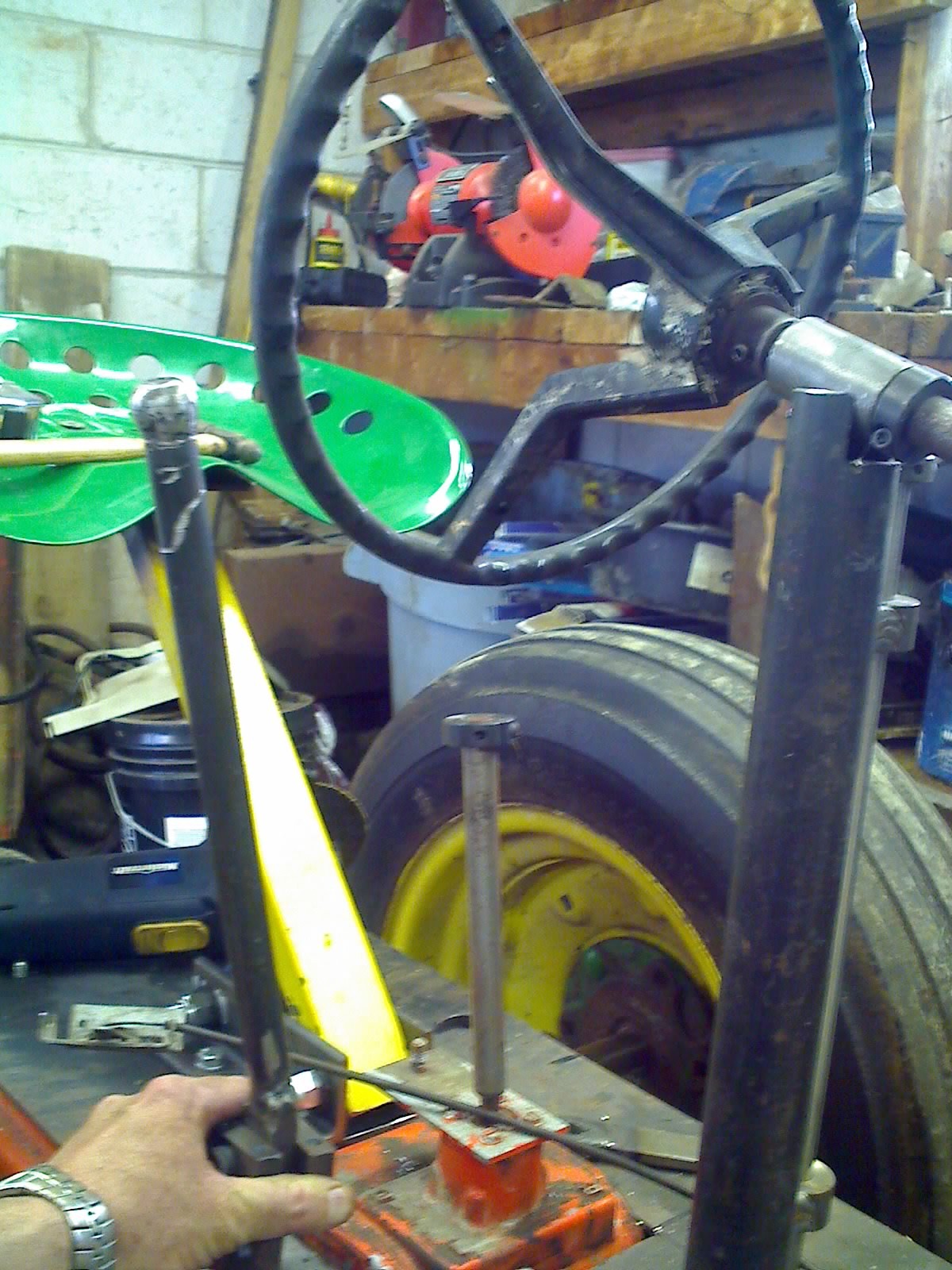 Well it has been a while but I finally got back to it. Got the hood fitted, work platform fitted, & front tires and rims changed to a larger set. Also got the hand clutch mounted.