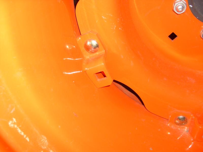 A little different design from the LS but the same principle. Kubota has one bolt whereas my LS has two bolts holding the rim, plus the LS is solid all the way around the rim with the S turn in and out continuously rather than just a single little lug. Install the center hub on inside or outside of the connection on the tire rim to change track by 2" per side. Flip the rim to move 4+ " per side. Your's looks to be at max width now.