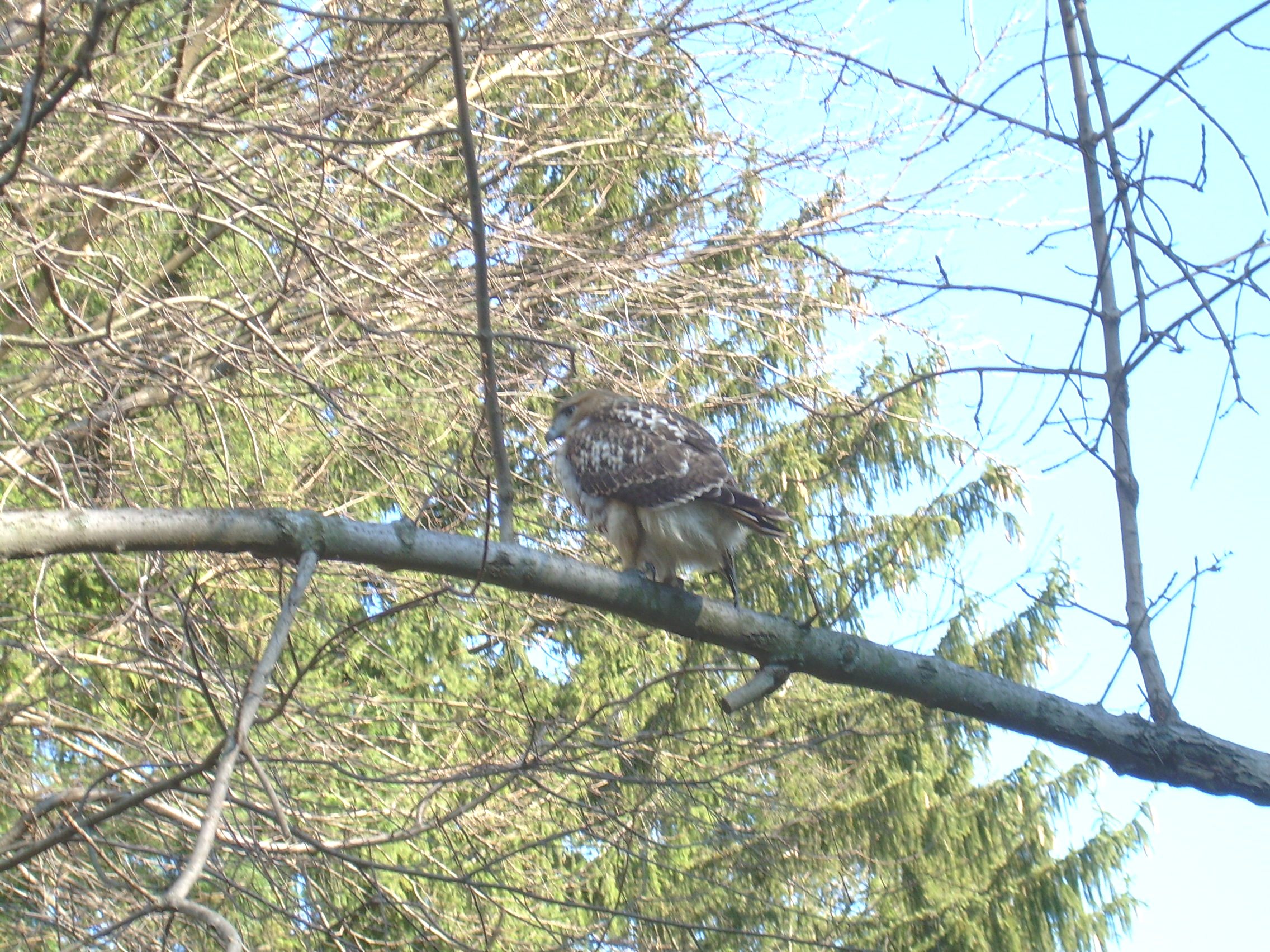 Couldn't get a turkey pic though I've seen some huge ones recently, but this guy flew into my sons picture window today, he yelled down that a hawk flew into his window and was laying on the driveway, knocked him silly but by the time I grabbed the camera he got up onto a low branch.