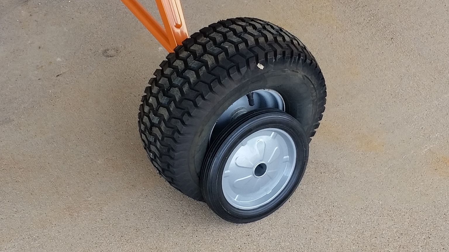 I bought that one about 18 months ago, for a project. Decided to upgrade it a bit. The little tires are a joke. I had a couple of bigger tires from a fertilizer spreader I “recycled”.