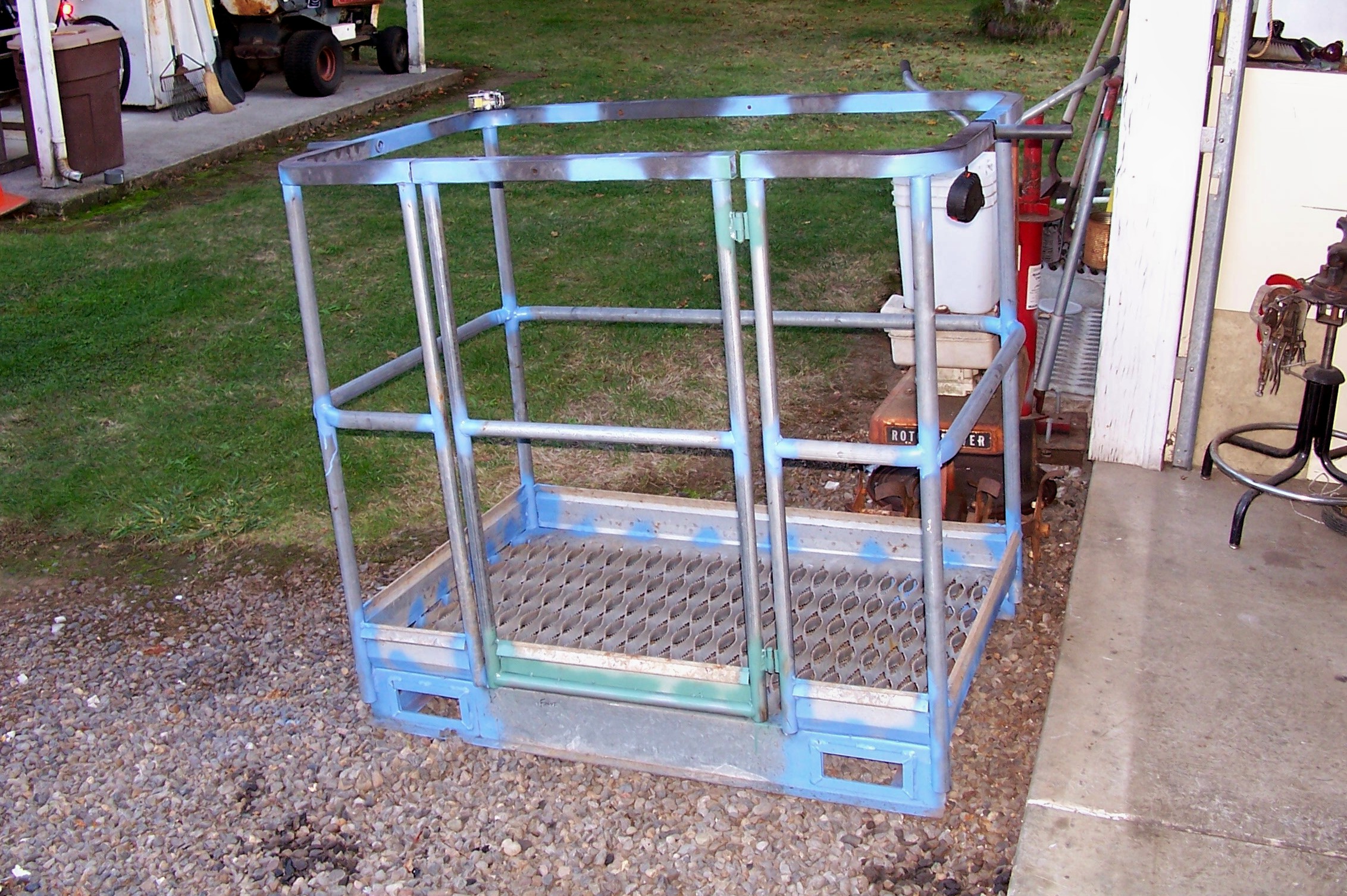 I'm one of those few on here who has a tractor but no front end loader. Oh, I'd like to have one but haven't been able to make one or scrape up the $$ to buy one. BUT, if I did, I'd have one of these around without the tank to use as a "manlift cage". The idea occurred to me a few years ago and don't think I've ever shared it. Seems logical. I have owned a few of these tanks and they're very handy. I was looking at one I had that was pretty much beyond use due to it setting out in the elements and the tank was deteriorating. Seems the idea never went beyond just giving it away. Has anyone ever considered doing this? Some call them totes, some call them IBC tanks. A little ingenuity and you could have a hinged door going into it or just crawl in and out. What do you think?