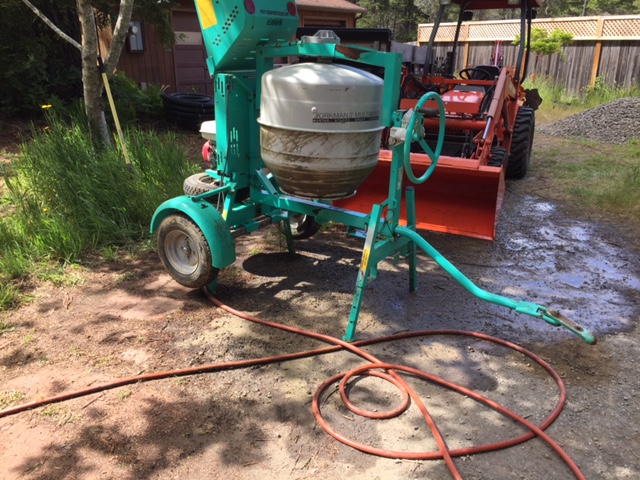 I never tried to haul mixed concrete. Frankly it all sounds more trouble than it is worth. I have always done my own mixing for small jobs, am now 68 and still do my own mixing when needed. The key is to find ways to minimize the lifting. I buy 60 lb sacks and get it loaded onto a pallet in the pickup by the sturdy lads at Lowes, about 1000 lbs at a time. Use the tractor and forks to lift it out of the pickup. Switch to loader bucket. Empty the sacks into the loader bucket at ground level. Then raise the bucket to chest height which makes shoveling into the mixer a breeze. I do not use it much these days, but I keep this mixer around, it always starts on the first pull and does a fast good job of mixing. I have a big old construction wheelbarrow but I only fill it half way to make moving it easier. For the small jobs I do around our property this is the way to go. I wouldn't mind paying the minimum fee for ready mix, but I am usually working in a place where a big truck cannot go, and on projects where the concrete cannot be dumped all in one place anyway. And another thing is, around here it is pretty hard to find a young helper who actually wants to work. They like to get paid but the work part is a different story. So I work in small batches at my own pace.