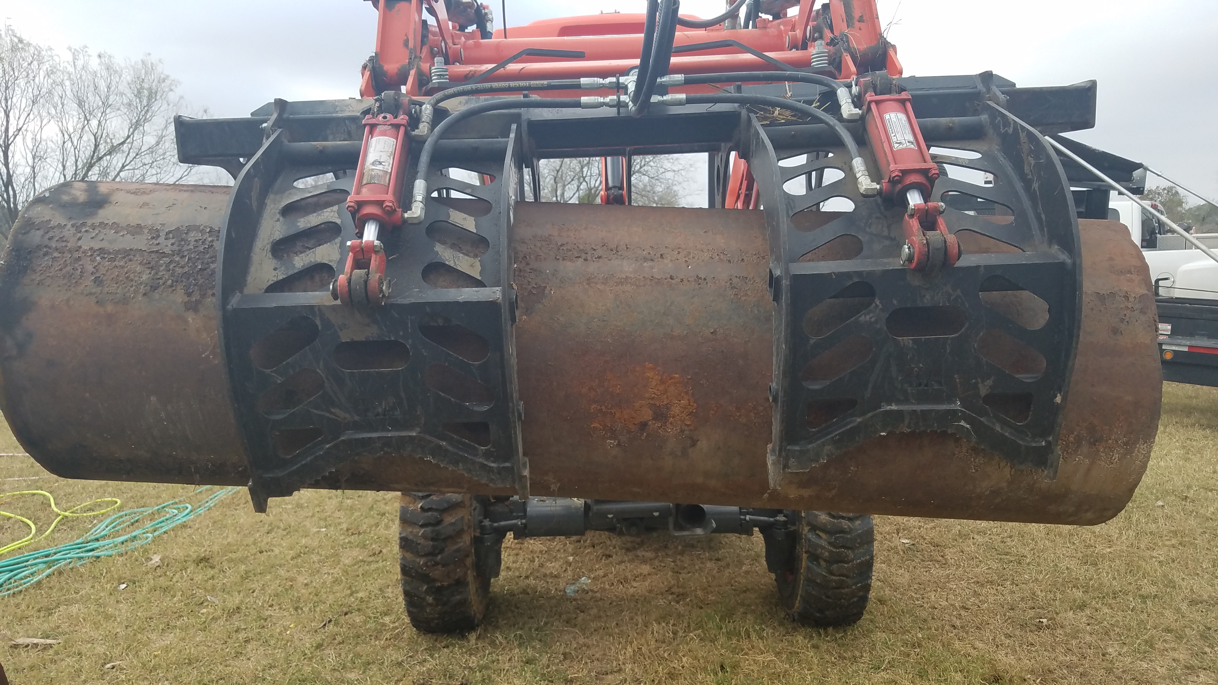 Resist the urge to buy a big huge grapple. I’ve ran a skid steer a fair amount with a huge 84” and ridiculous tall lids grapple. I hated that thing and put a 60” grapple on mine. I was going to put an even smaller one on it but the 60” was already built and I was going to have to wait weeks for the other one. This was the grapple I had on a 95 Kubota CTL. Why they offer such a grapple with a SSQA is beyond me. View attachment 628690