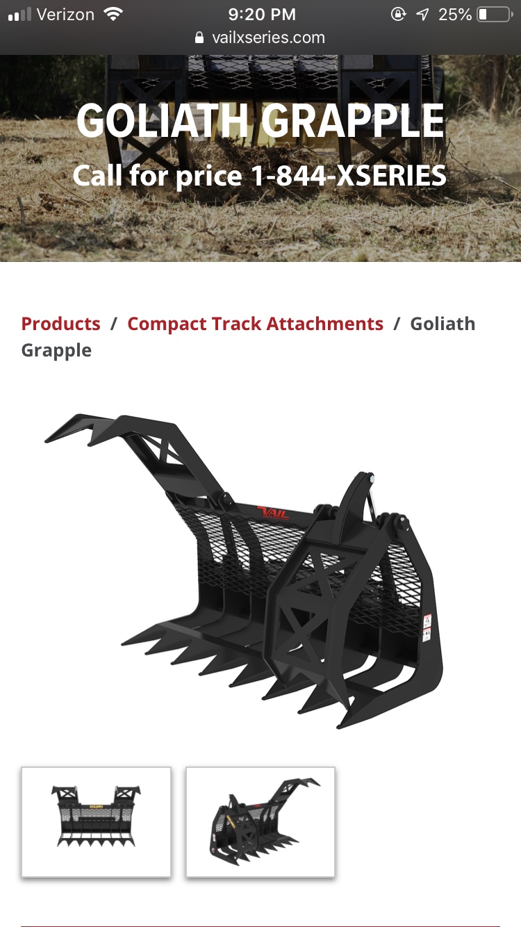 Resist the urge to buy a big huge grapple. I’ve ran a skid steer a fair amount with a huge 84” and ridiculous tall lids grapple. I hated that thing and put a 60” grapple on mine. I was going to put an even smaller one on it but the 60” was already built and I was going to have to wait weeks for the other one. This was the grapple I had on a 95 Kubota CTL. Why they offer such a grapple with a SSQA is beyond me. IMG_7805.JPG