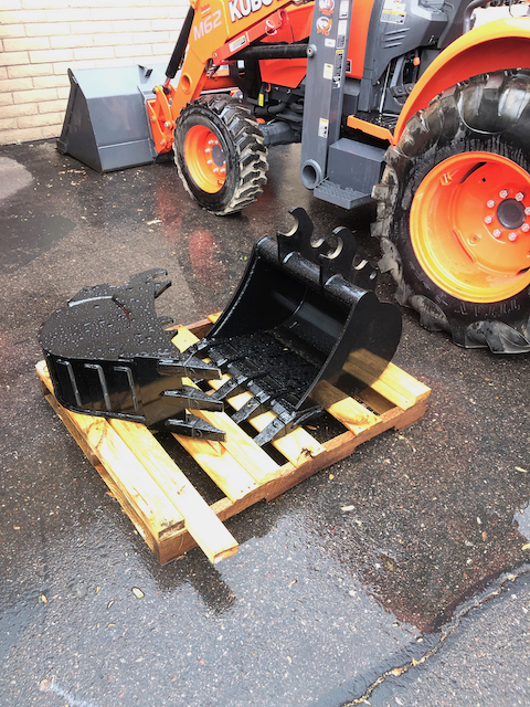 I only have the 24" bucket. I was gonna get a 12", but the pivot point for the thumb is wider than 12". So digging deeper than the bucket i would gouge that area in the ground. They do make a 16" and a 18". I havent decided yet which to get as the 24" works great.