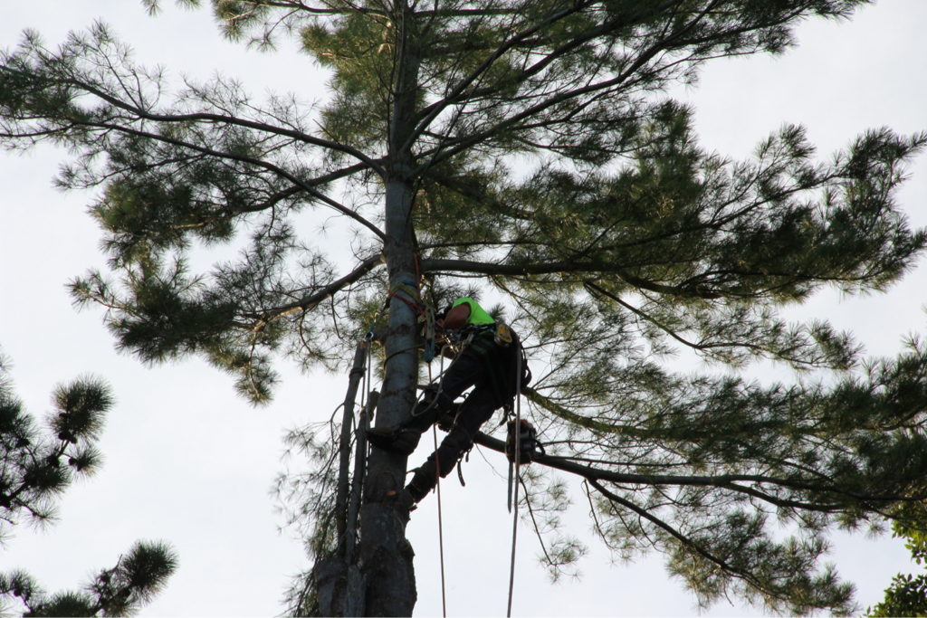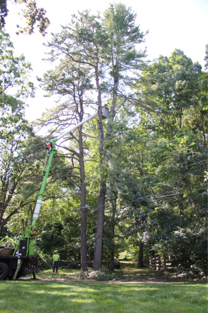 A few years ago , posted a thread about 1 lone lightning strike the entire day , hit a 70' + tall , over 100 year old pine that " WAS " 20' from our house . Called these guys that our neighbors had used . Two ( 2 ) older gentlemen showed up , One belted up and started up , taking limbs down as he went . Got to the top and started blocking as he came down . 3 hours , $300 and had 3 neat piles of limbs plus a Whole lot of rounds that I eventually got split . Still burning that pine every winter as we only use it for starter wood . Base of tree was 3' + in diameter , but these Men made it look like a simple walk in the park . House was only 20' west , Utility pole / main breaker was only 20' northeast , Shop about 40' north , so although I have fell bigger tree's , not in that close of an area .