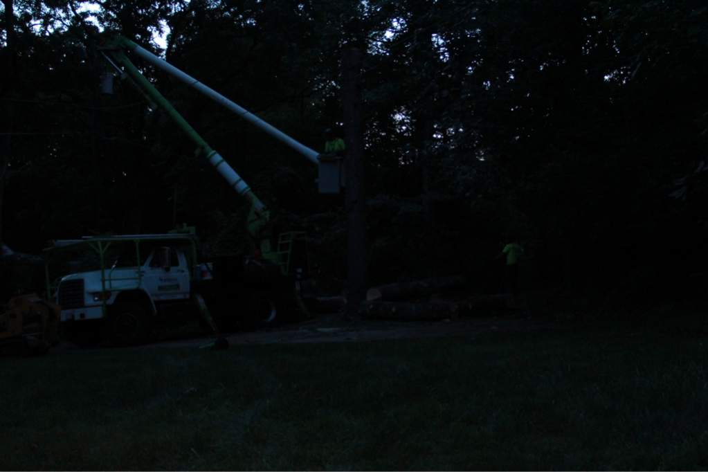 I was really impressed with the little mini skidsteer. They never let a "mess" pile up, each time 6 or 7 branches got to the ground, the guy on the ground would grapple up all branches and move them out of the way, it was really fun to sit and watch them work, I kept my distance so I was never in the way, and I sat back in the golf cart enjoying a few beers while watching them work, it really was a fun evening.