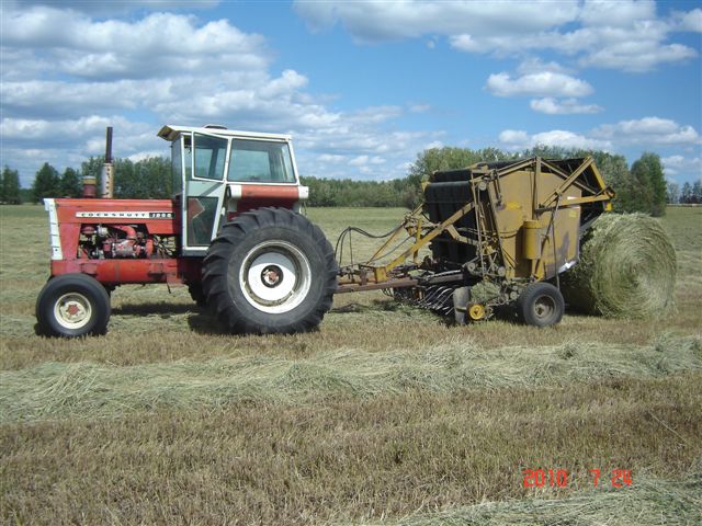 Thanks for all the great pictures, brings back memories of when I used to drive the "train", a New Holland 5600, with a square bailer that had a kicker on the back and a hay wagon behind that. Was alot of fun for me, but for my brother who rode in the hay wagon and stacked the bales. The kicker had a movable output spout, so if my brother was giving me any lip...... I could shoot a bale at him :D aah what great memories:thumbsup: