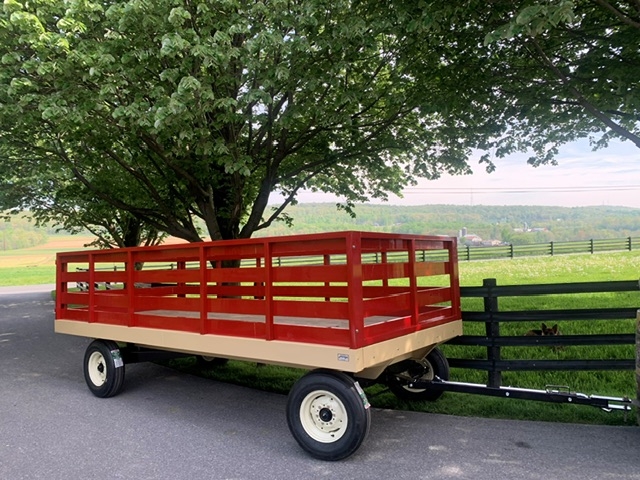 Your thinking on this will leave a smile on every kids face. Even old timers will get a laugh. It looks like the perfect parade wagon.Update. I contacted several companies that build or say they sale running gear to not get replies or quotes. Horst said I can get one from my local JD dealer as they are a dealer for the distributor. My local JD place said they cannot get any type of wagon running gear and can’t get parts for the old JD ones. Distributor said they can’t sale to me and I have to use my JD dealer. That loop is not the answer.