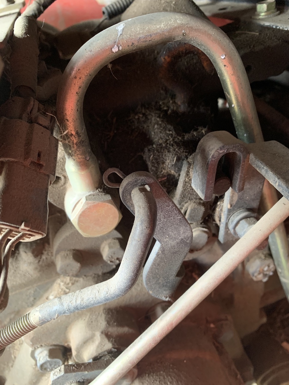 I just went and looked at my 2400H. I did not lay on the ground to confirm but fairly confident that 45 degree fitting in the banjo bolt is the power beyond - pressure supply line to the 3 point. In looking at how the lift - lower lever operates it does not rotate the control arm - spool very much so kind of hard to tell if it is moving.