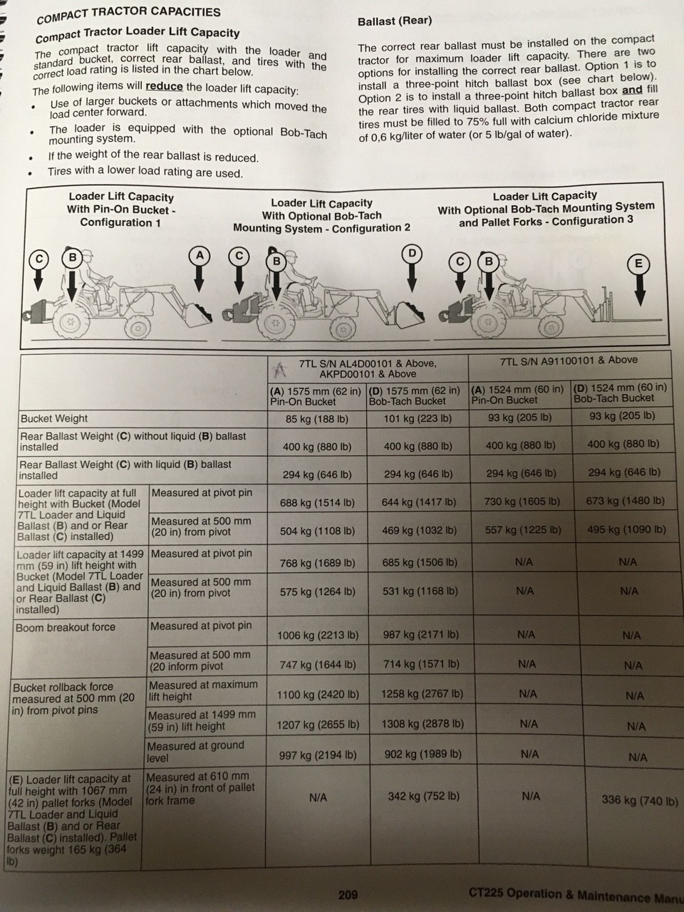 I would think you might be coming up a little short on the loader according to this chart. Are you sure your bail only weighs 1500 pounds. Seems like this time of year they could get pretty heavy with all the moisture