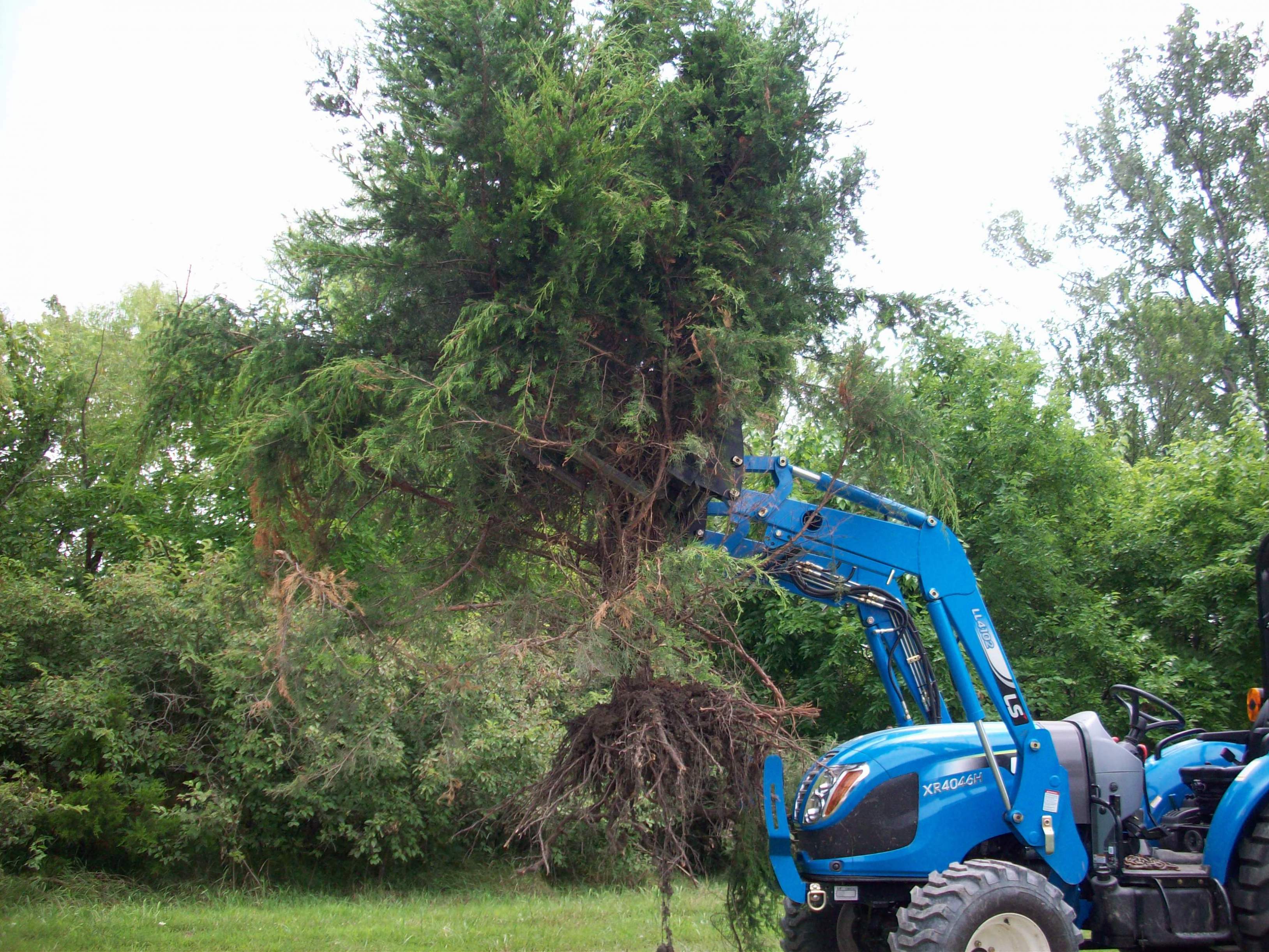 On each side, right at the level of the "tongue" - a pin on each side, so I can fold the guard forward. I took the basic guard to a welding shop and they did the expanded metal and the tongue. It wasn't cheap but then again neither is repair to a radiator/ new battery/etc. Its saved the radiator 2X that I know of and I'm careful to the extreme.