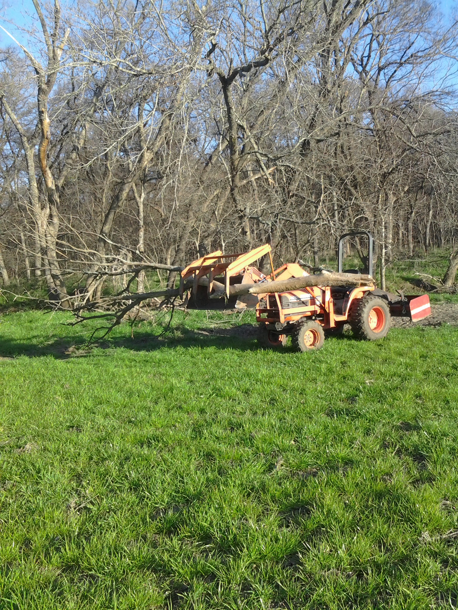 Circa 2001 Kubota B7500 holding flood debris with homemade grapple from clean up last week.