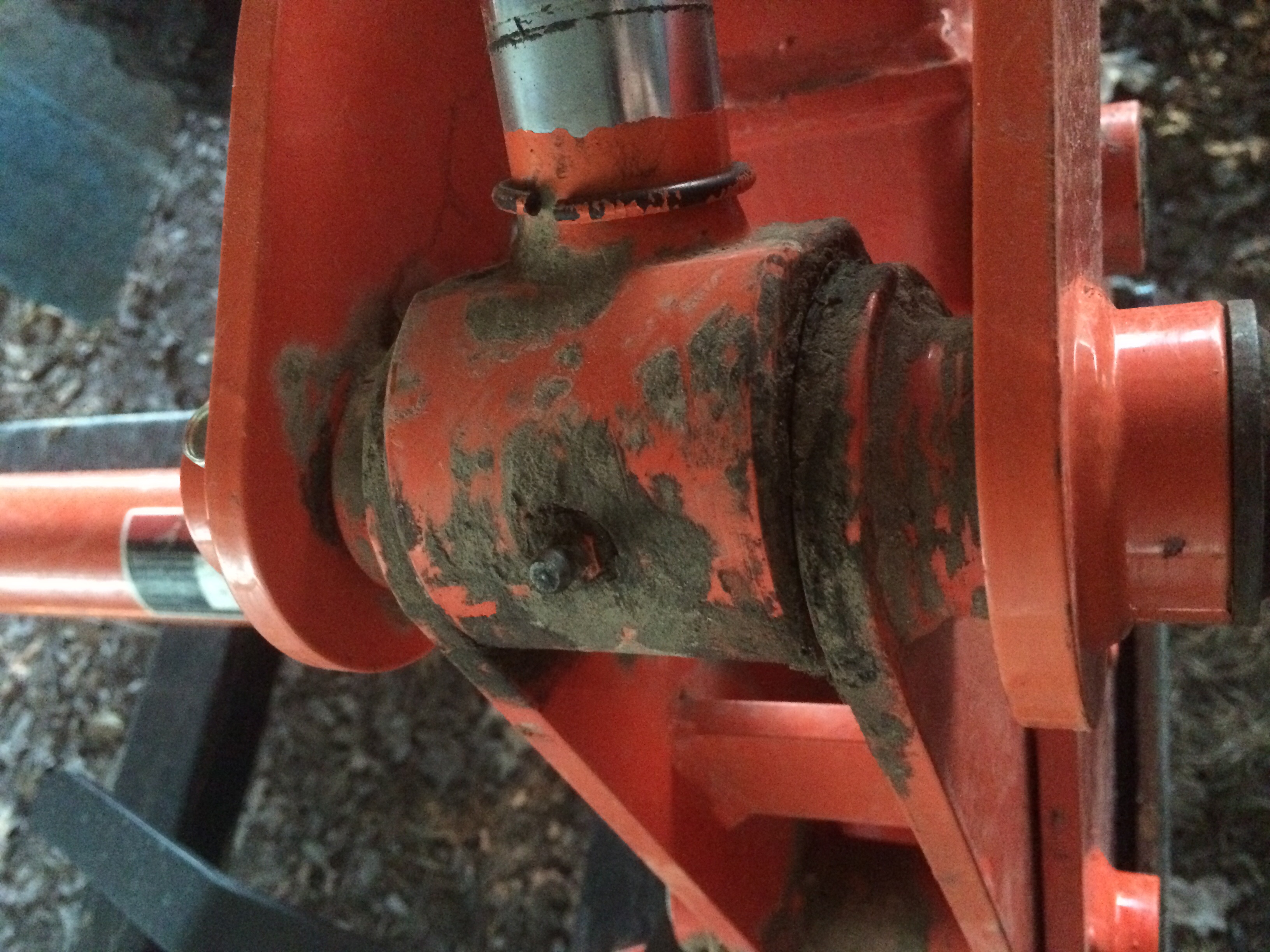 It has 236 hours on it. I didn't see any grease either, although I wasn't quite sure what to look for. The dealer showed me how the main pivot pin for the loader was nice and tight with no egg shape to it (whatever that means).