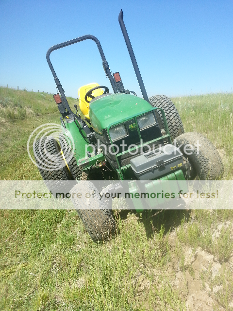 I look at the pictures and I'm pretty sure my BX2350 with just the midmount mower would cut that hill pretty easy up or down with out losing traction. The problem is you have enough acres that would take a long time and since its a finish mower you would have to cut it every couple of weeks. Probably not a better solution than what you are doing now.