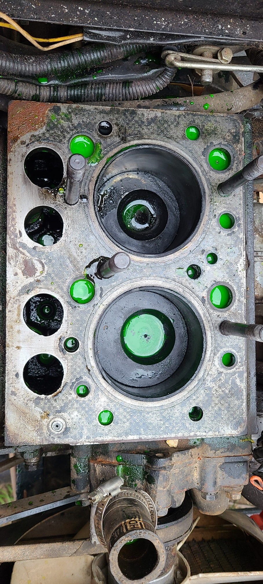 There is zero oil mixed in the oil. No milkyness at all. There is zero oil in the coolant. There was antifreeze droplets all on the rocker assembly but no milkyness. The radiator coolant was below the core suggesting it in fact leaked in the case.