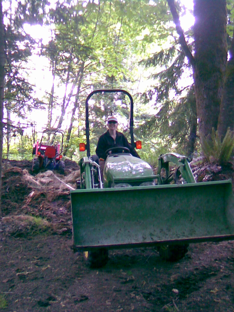 So I get a phone call this past weekend from my neighbor. Seems he was tending to his giant manure pile and got his Kubota stuck. Not only stuck, but REALLY stuck -- as in down-to-the-axles stuck. Being a helpful green neighbor, my wife and I drove our 2320 over and pulled them out. Here are some photos of the event.
