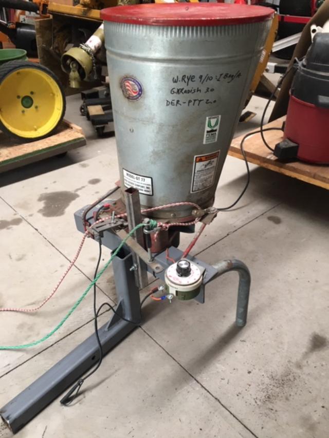 Rewired the whole thing using an on/off thumb switch from a FIMCO sprayer........so I can now operate from the cab of my Honda Pioneer. ......along with some pull ropes to operate the seed gate via a pulley system. Green for open / red for close. Easy Peasy. I can see the open and close of the seed gates and still drive in a straight line.