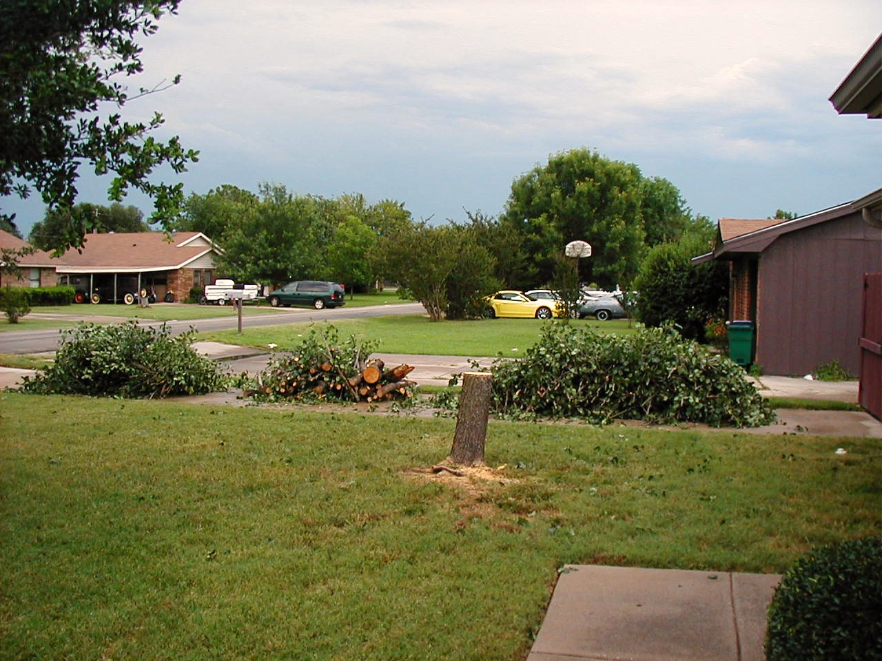 It's some weird weather alright. I was glad for the clouds covering the sun while I was cutting up the downed tree. With my wife's help, we had it done before 11 a.m. and stacked in the driveway, as you can see in the picture. And we've gotten less than a tenth of an inch of rain since last night. However, I just got off the phone with an old friend in Oak Cliff (SW part of Dallas) and he said he's gotten 8" so far and it's still raining.:rolleyes: Apparently there's lots of flooding in Dallas and Tarrant counties.